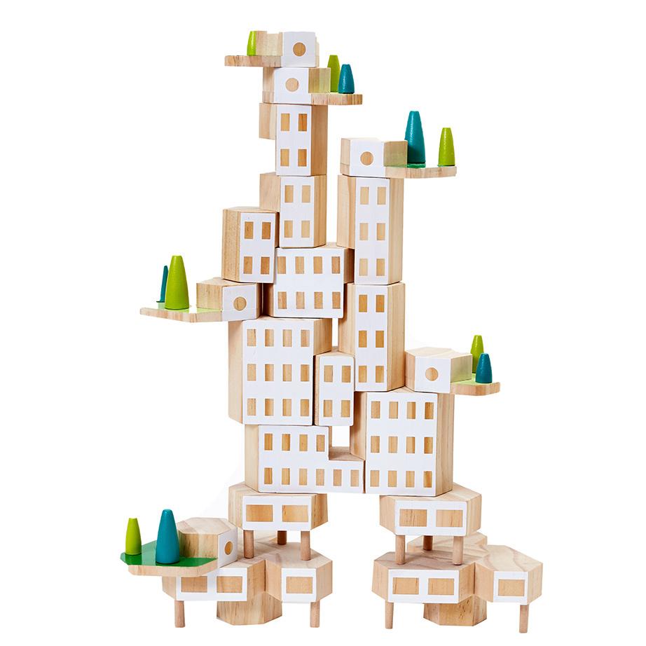 Build the world you wish to see with Blockitecture, designed by James Paulius for Areaware. Each set of architectural building blocks comes with pieces made from New Zealand Pine. The deluxe Garden City set adds pavilions and garden terraces to the original Blockitecture towers. Create structures inspired by the skyscrapers and glass towers of every metropolis, massive utopian raw concrete forms of the Brutalist architects, the visionary housing complex, Habitat 67, designed by Moshe Safdie or colours and forms inspired by post-modern architecture. Give your buildings a natural setting with the 24 piece Parkland set. These sets can be combined and are perfect for creative builders young and old.