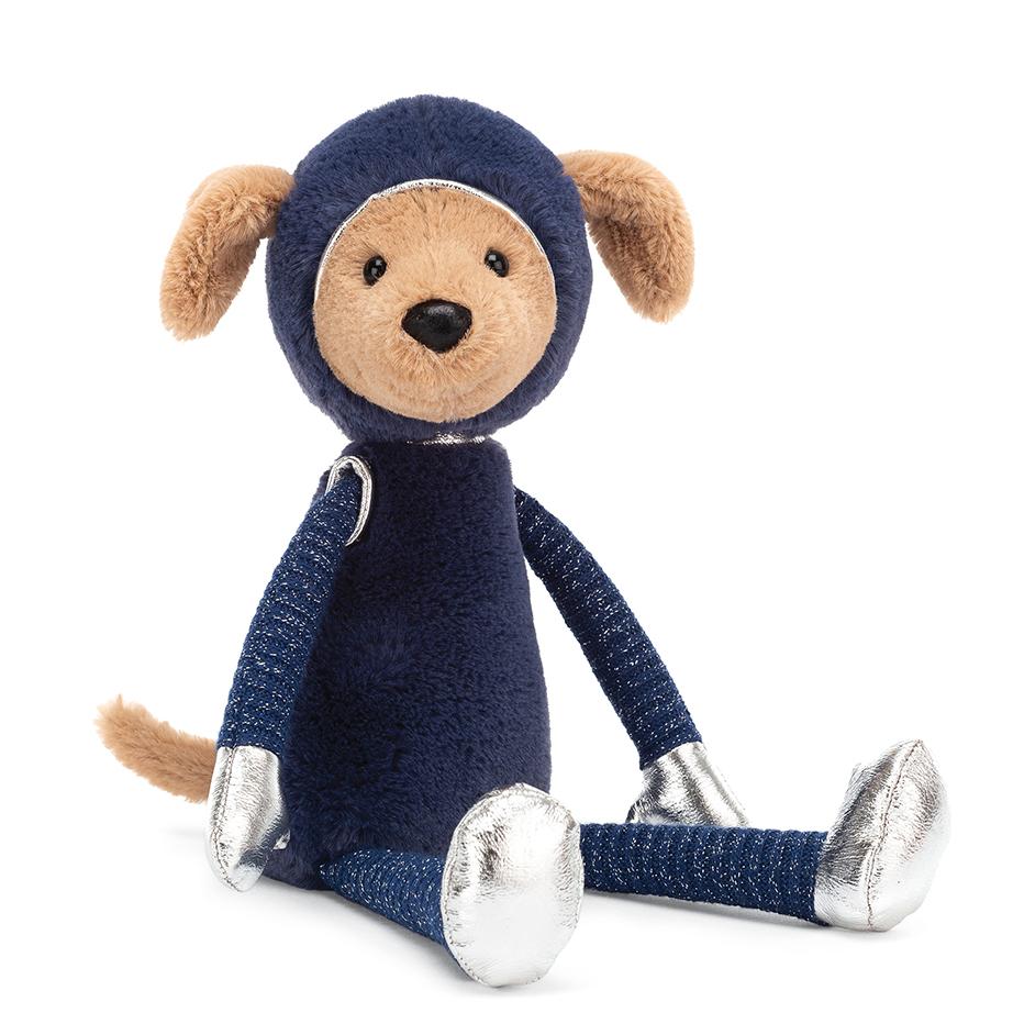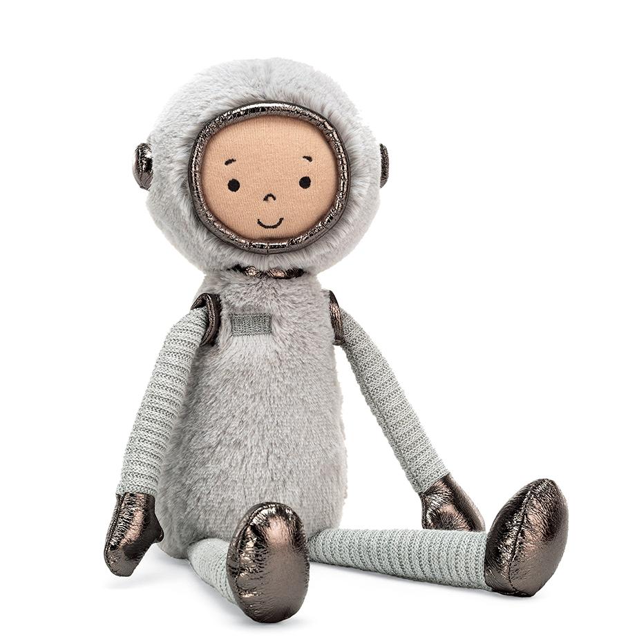 Start the countdown for cuddles. Jellycat's Jellynaut, Galactic Pup, and Jellybot can launch in the Cosmopop Rocket to visit Zalien. From their plush bodies and metallic accents, these out-of-this world collection are cute, super-soft and ready for space adventures.