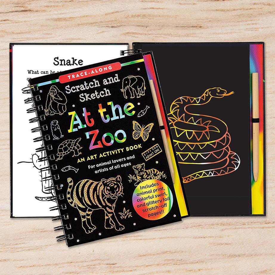 Activity books for imaginative artists of all ages, the Scratch & Sketch Art Activity Books from Peter Pauper Press are great for learning and creative fun. Scratch away on the black coated pages with the wooden stylus to reveal patterns, swirls, and holographic colours. Images appear like magic! Each book contains interesting facts and stories. The Trace Along titles, perfect for younger children, have white outlines on black scratch-off pages making it easy to trace their favourite illustrations.