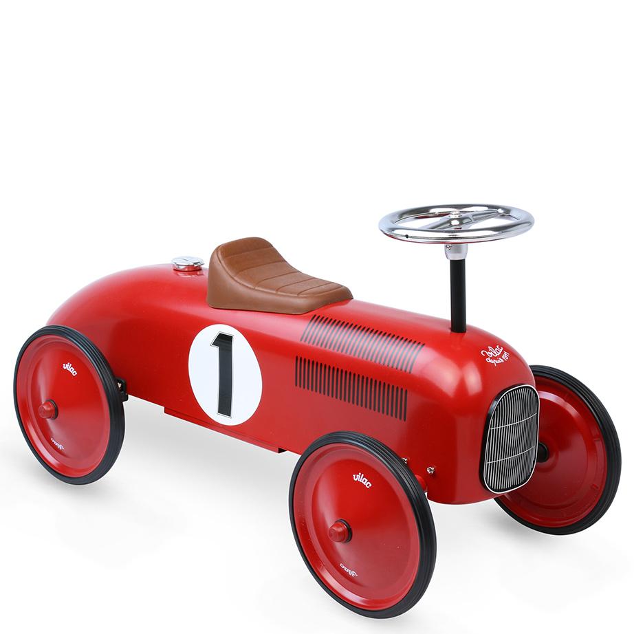 Let your little one feel like a real speed demon on the Vilac Vintage Ride-On Race Car. This stylish retro racer from the renowned French toymaker has a durable metal body, padded seat, and a steering wheel for the moveable wheels. Fun to play on, the details also make these cars a welcome design element in any room.
