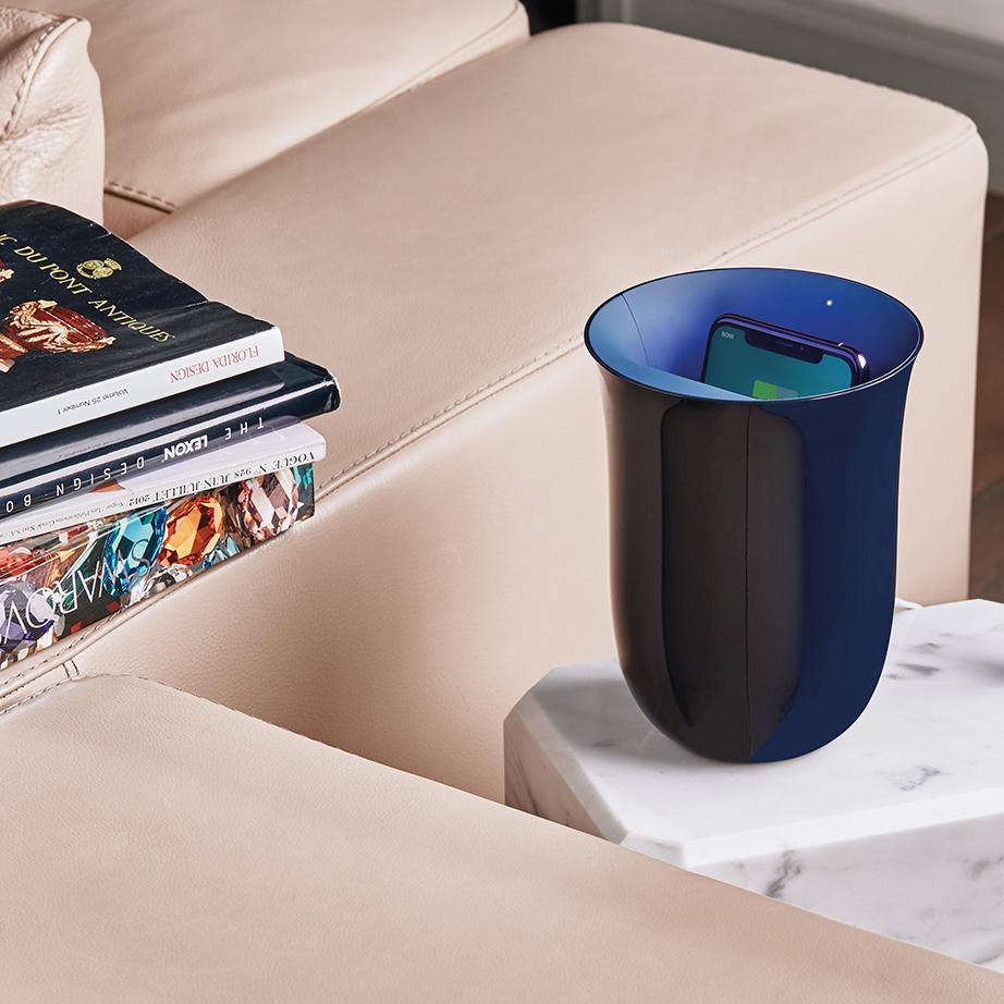Designed for Lexon by Manuela Simonelli and Andrea Quaglio, the Oblio looks stylish while sanitizing and charging your mobile phone. Cell phones are one of the dirtiest objects we come into contact with every day. Kill 99.9% of the bacteria most commonly found on your smartphone in twenty minutes while charging it at the same time. The Oblio uses anti-bacterial UV-C light with ionizer technology to destroy harmful bacteria. The Oblio is also a 10W wireless charging station to keep your phone battery full. Pop your phone in and keep it charged, safe, and ready to use.