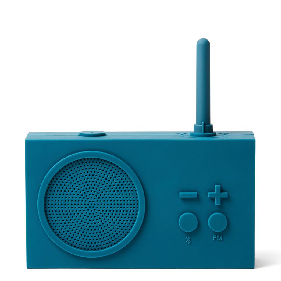 The Tykho 3 Bluetooth Radio and Speaker, designed by Marc Berthier for Lexon, is a rechargeable FM radio and speaker that lets you take your tunes with you. This version of the iconic Lexon radio incorporates a 3W Bluetooth speaker. With the Bluetooth capability, you can pair it with your devices to stream your playlists anywhere. The silicone coating makes this radio splash-proof, so it's as comfortable at the pool, lake, or beach as it is on your desk.