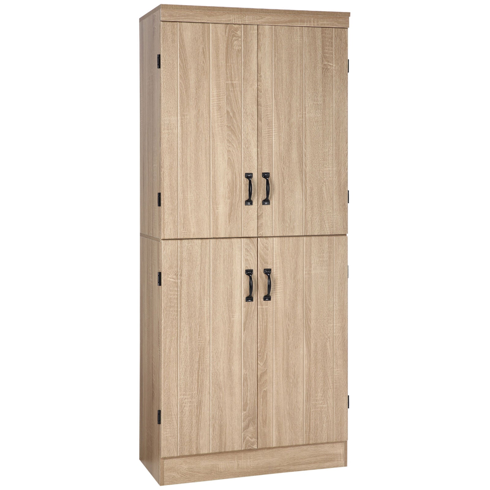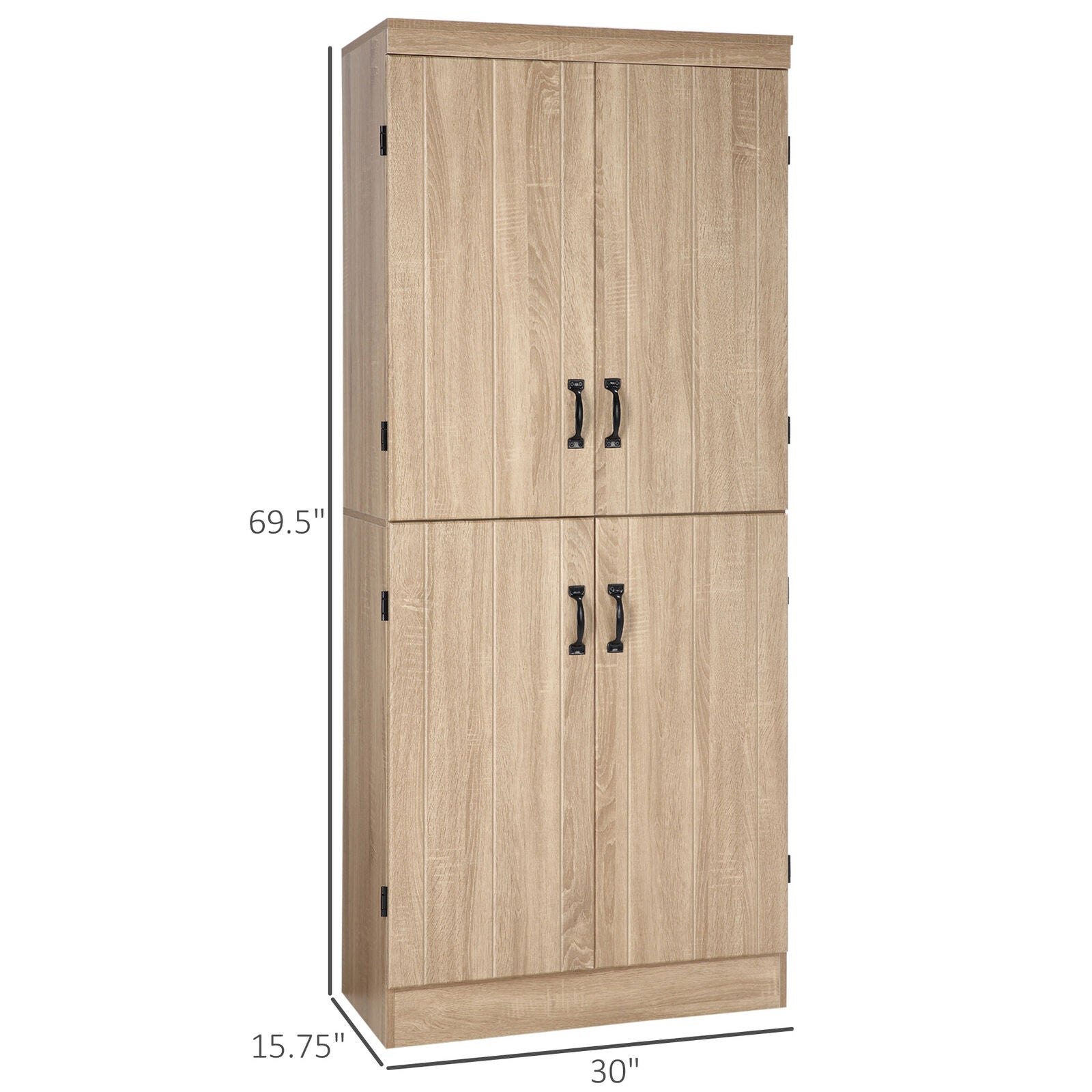 70" 4-Door Kitchen Pantry Freestanding Storage Cabinet w/6-tier Shelves, Natural