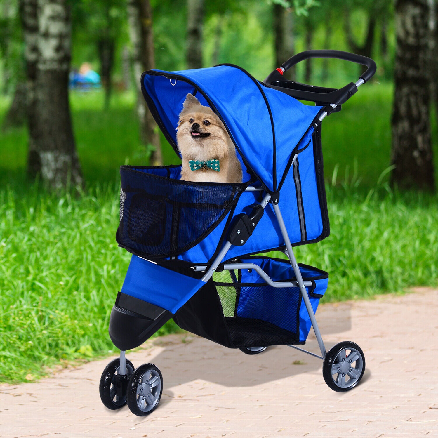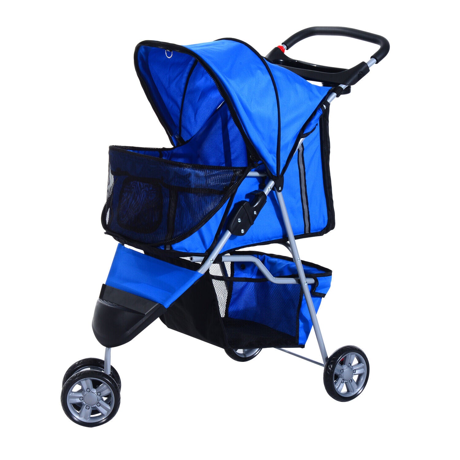 With its PVC coating cover to keep your pet dry. Safety locks located on the rear wheels so you can go out knowing that your pet is safe and secure at all times. Your pet can easily look out of the stroller by using the front bar for support. 3 breathable gauze provides air ventilation throughout while keeping the insects away from your furry friend. The large wheels glide effortlessly over smooth or rough terrains to ensure a smooth walking experience. Folding capability and lightweight design for easy storage and transport. This stroller is not only versatile and portable, but it allows your pet to spend more time with you outdoors |