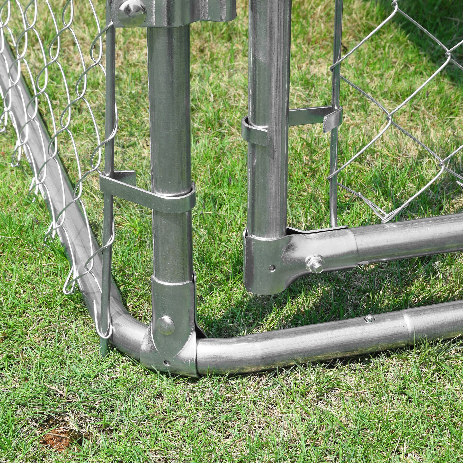 - Metal chain link dog fence includes a lockable door for convenient access and extra security