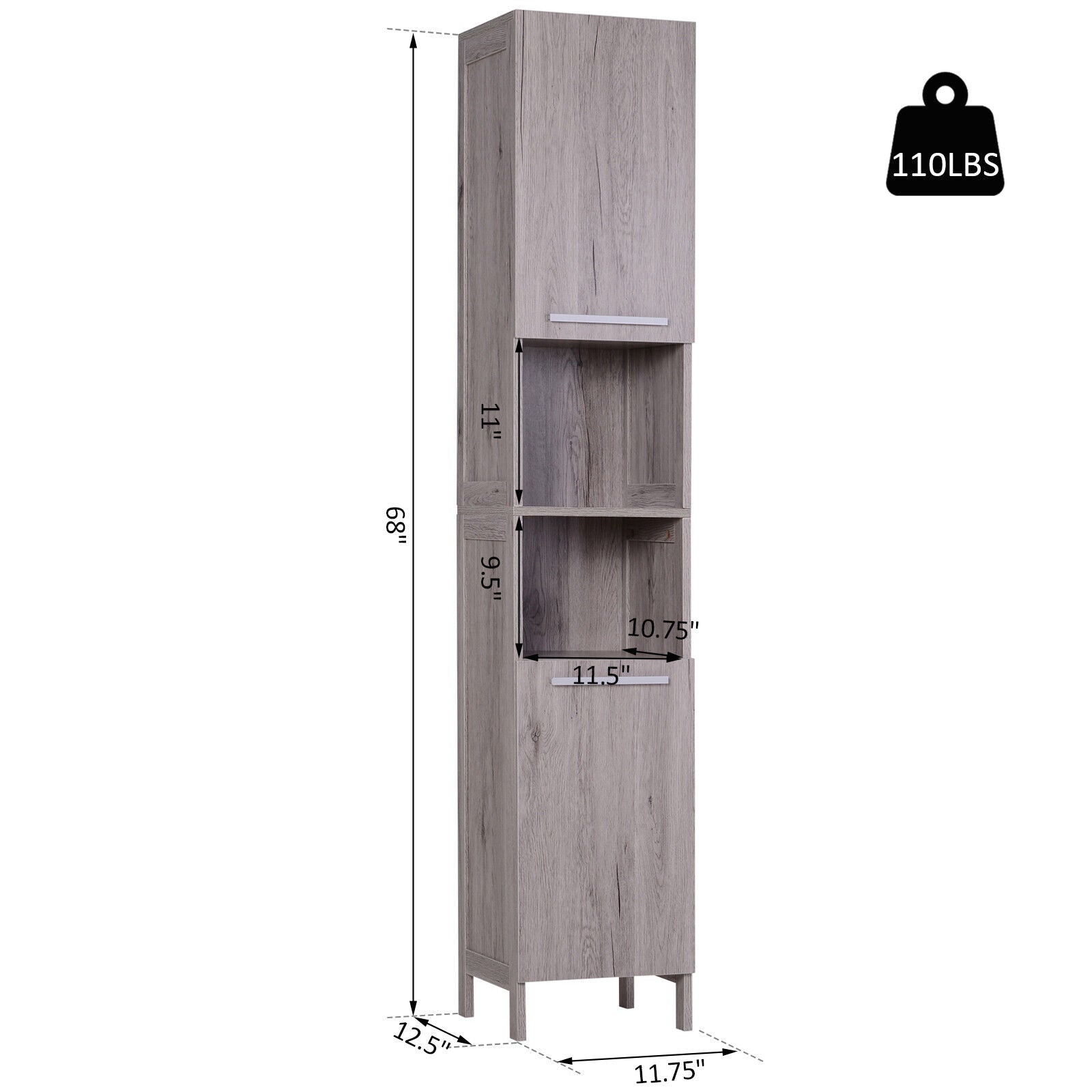 ● Overall Dimension: 11.75'' L x 12.5'' W x 68'' H