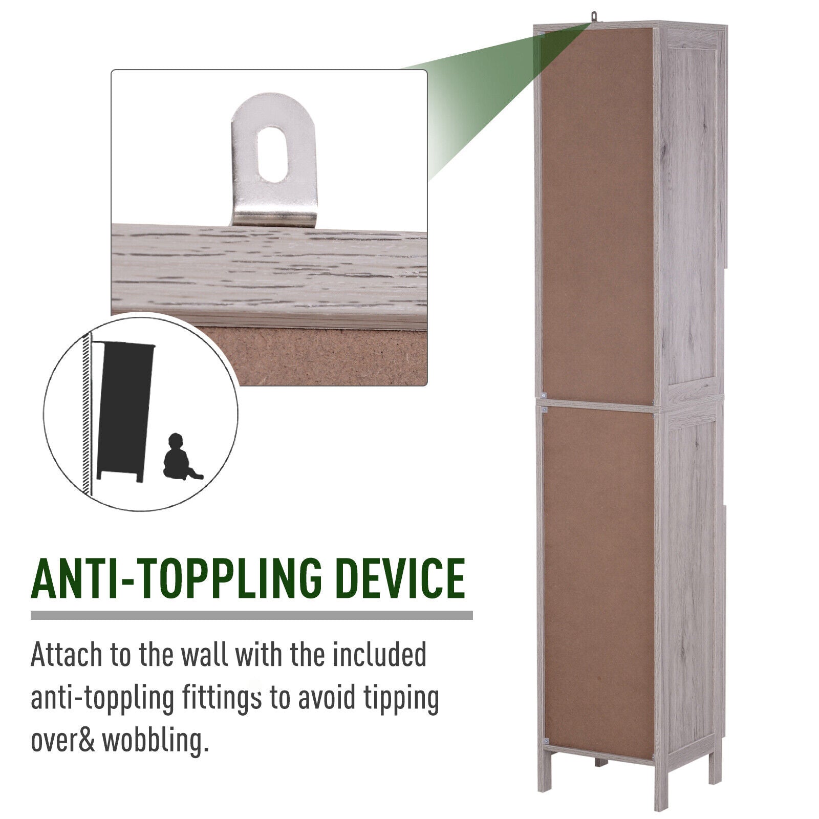 ● An anti-tipping design and can be fixed to the wall for added safety