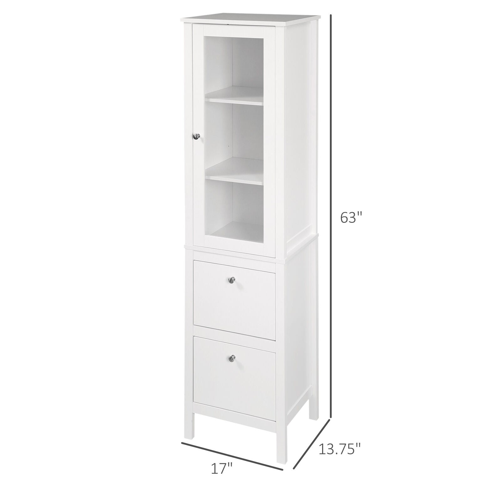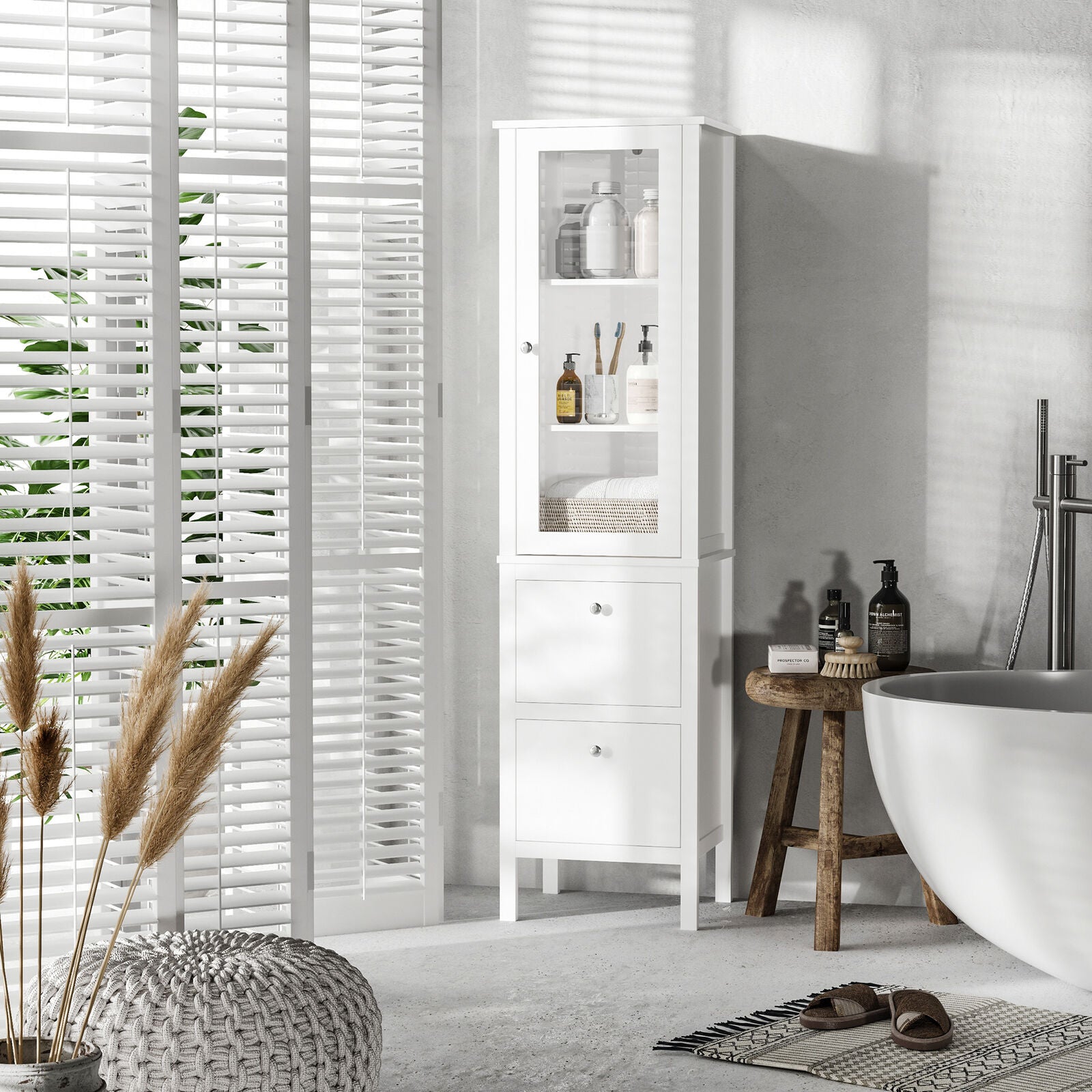 kleankin Freestanding Bathroom Cabinet with Tempered Glass Door and 2 Drawers