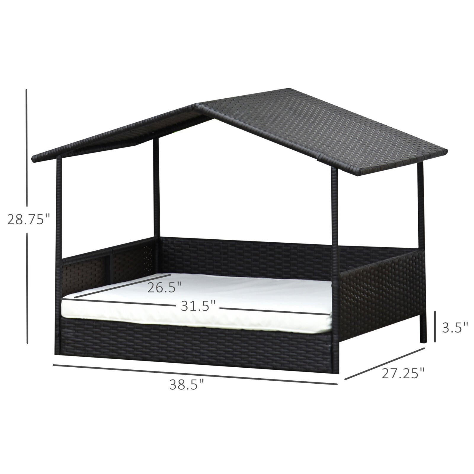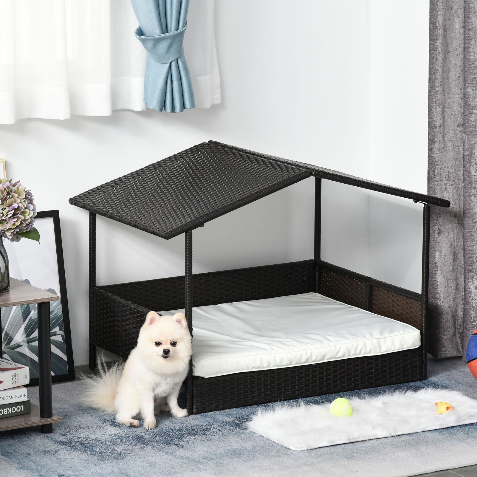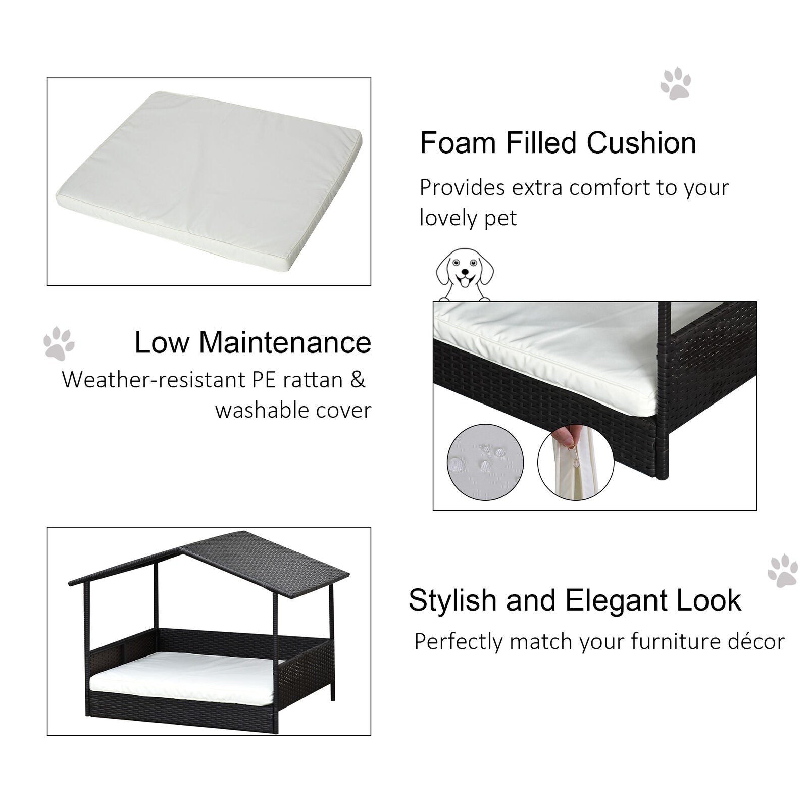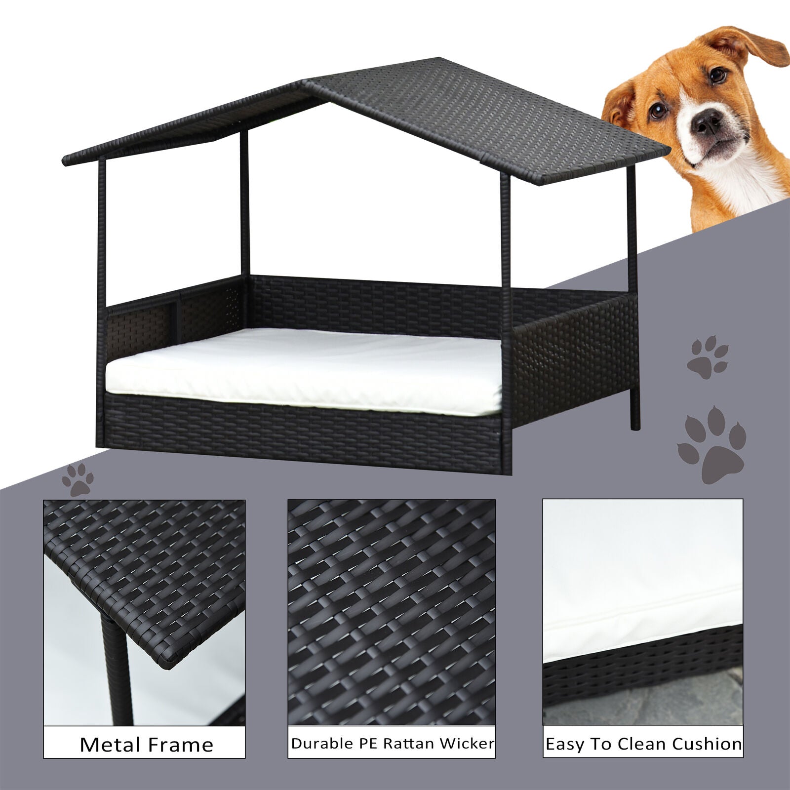 Wicker Pet House Dog Bed for Outdoor Patio Rattan Pet Furniture White