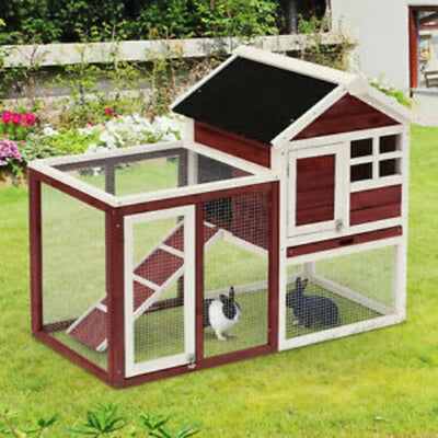 48"x25”x36” Rabbit Hutch Backyard Bunny Cage with Run Brown