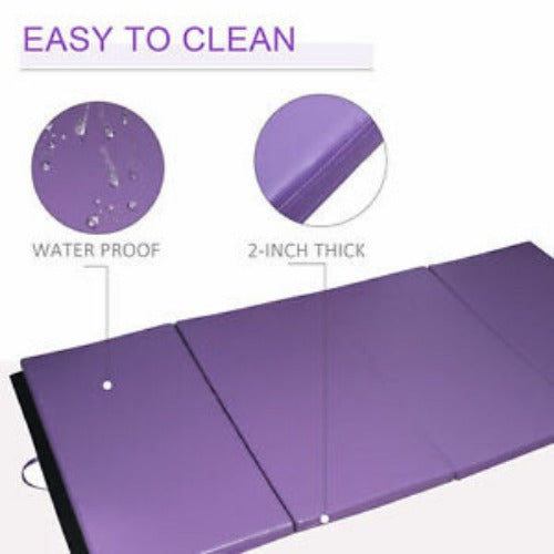 4'×8'×2'' Folding Exercise Mat Floor Gym Mat Fitness Yoga Pad PU Leather