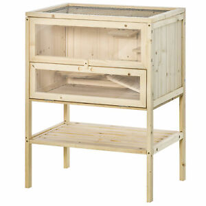 Fir Wood Hamster Cage Mouse Rats Small Animals Exercise Play House w/ 3 Tiers