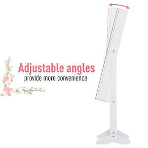 Freestanding Mirrored Jewelry Cabinet Armoire Organizer w/ Stand LED White