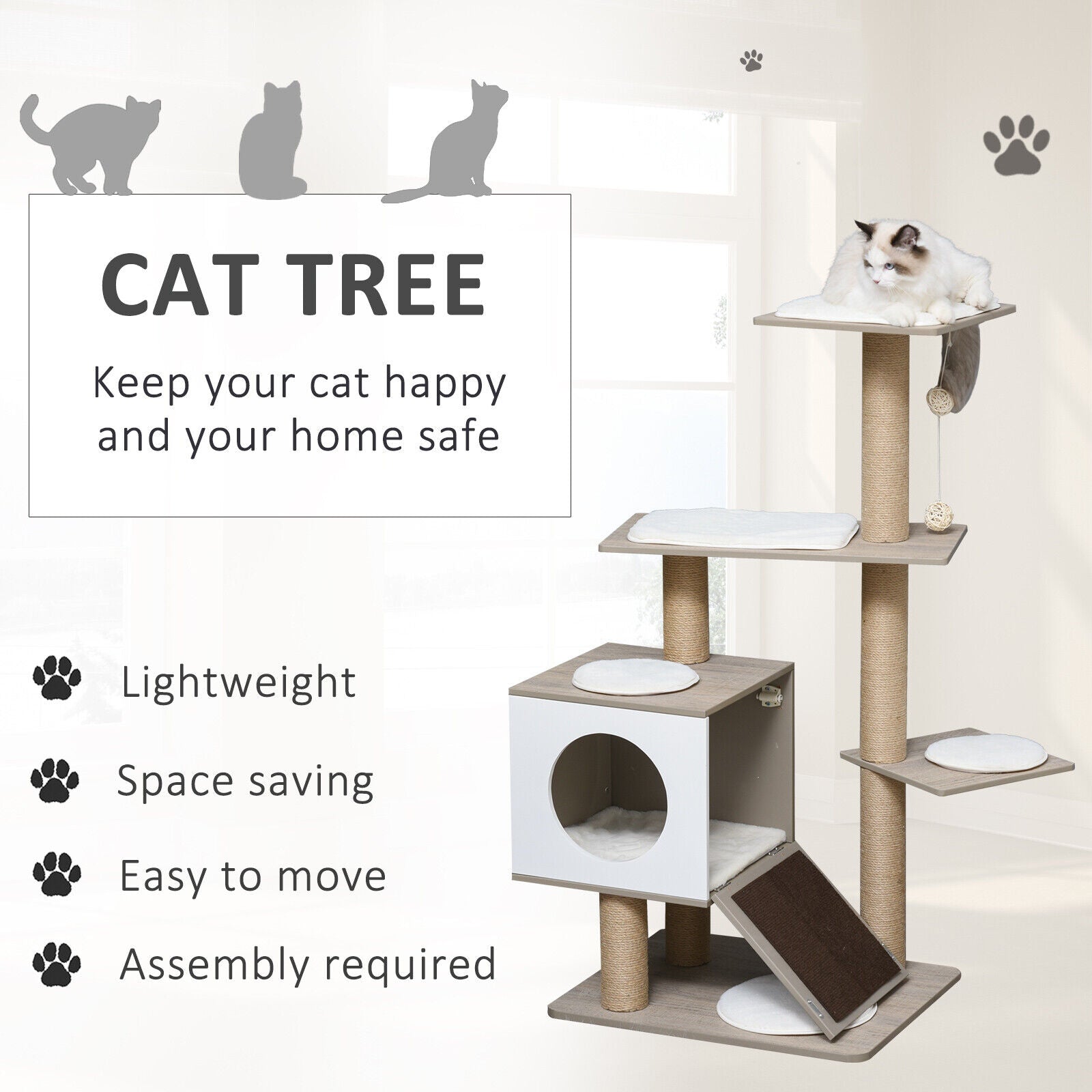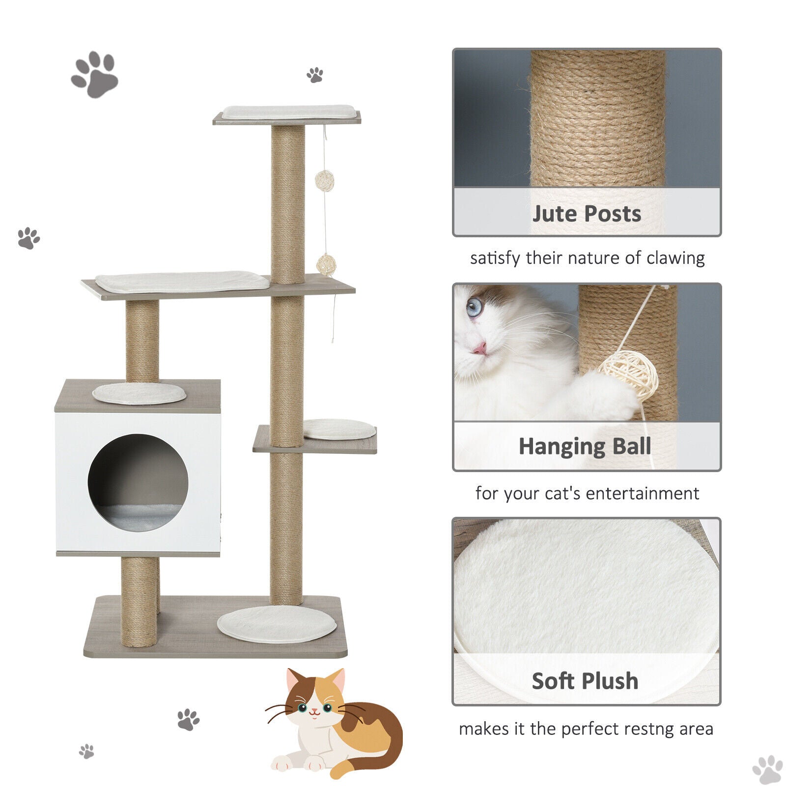 Cat Tree Tower w/ Jute Scratching Posts Condo Cushion Perch 23.5" x 19" x 48"