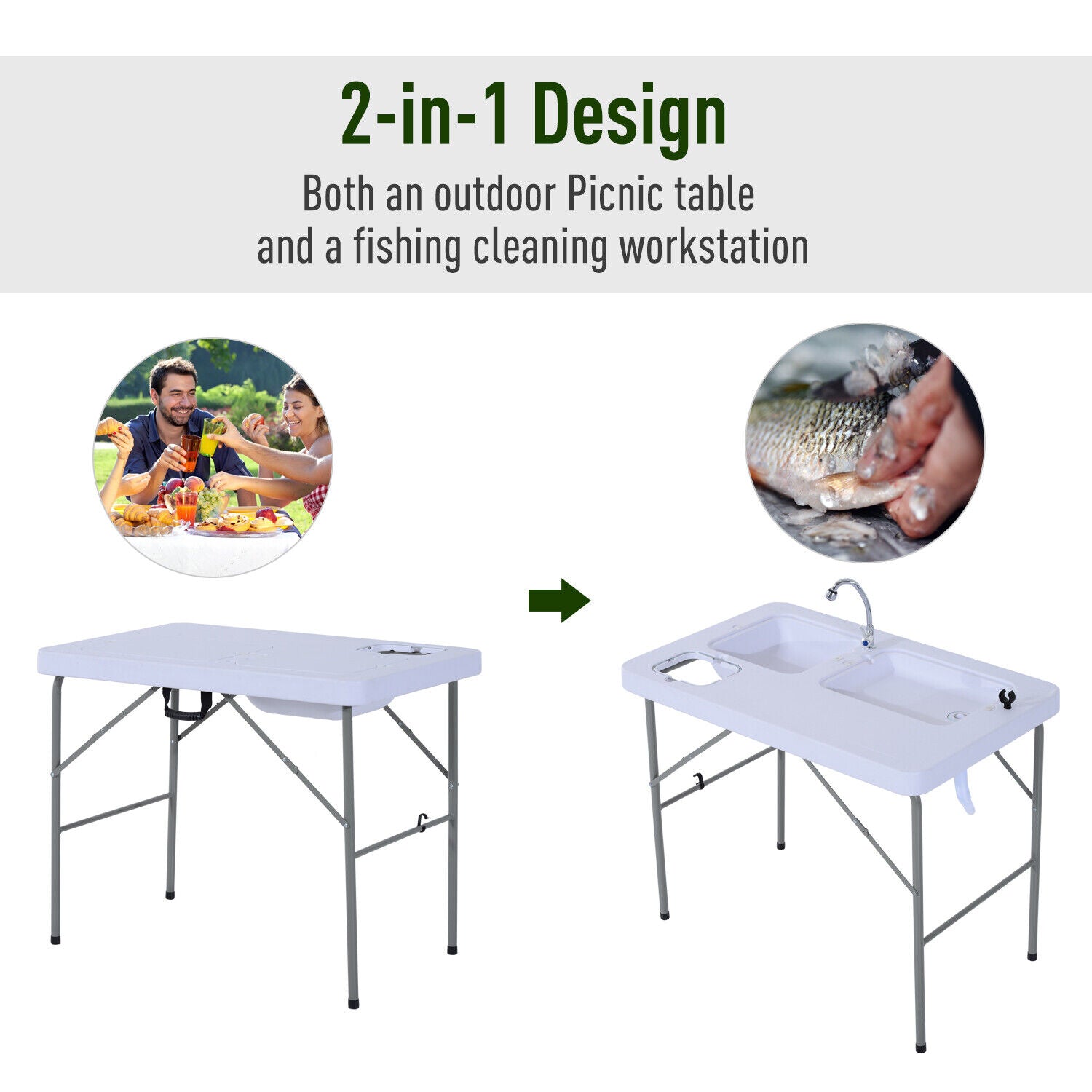 31.9" Folding Table Camping BBQ Fishing Table with Faucet and Sinks Portable