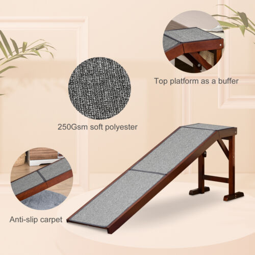 Pet Bed Ramp w/ Non-Slip Carpet & Top Platform Older Dogs, 77lb. Weight Limit 842525175449