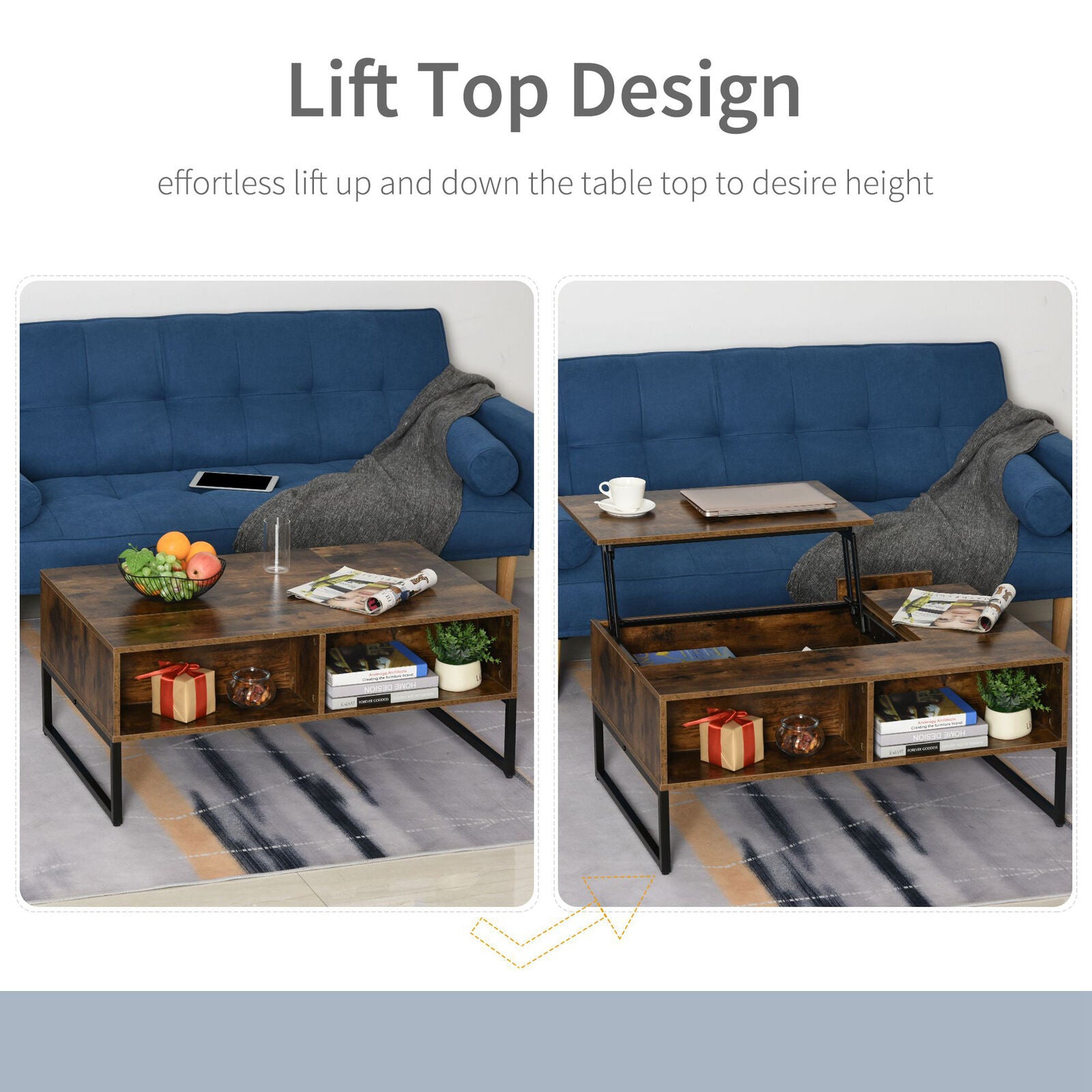 HOMCOM Foldable Lift Top Coffee Table Convertible Furniture with 2 Storage