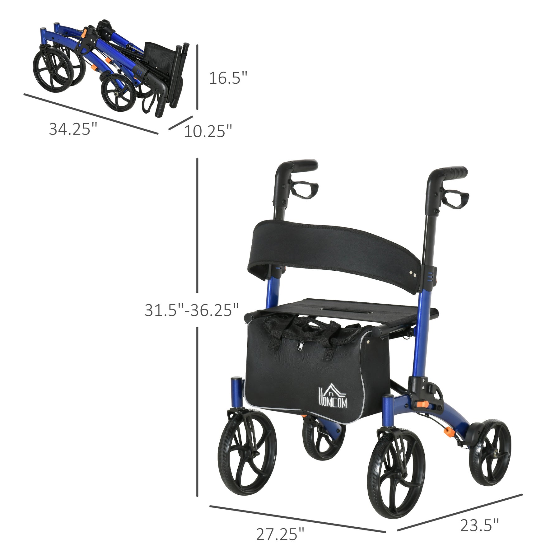 - Folded Size: 34.25"L x 10.25"W x 16.5"H