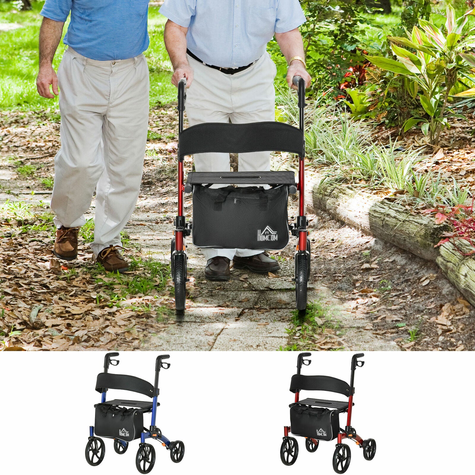 Folding Aluminum Rollator Walker w/ 10'' Wheels Bag Seat and Backrest