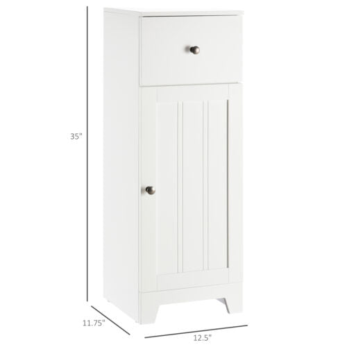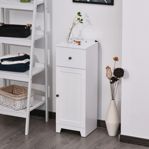 White Bathroom Storage Cabinet Unit with 1 Drawer, 1 Door and Adjustable Shelf