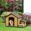 Wooden Outdoor Cabin-Style Dog House Kennel w/ Feeder Bowls, Medium Dogs 66 Lbs. 196393165720