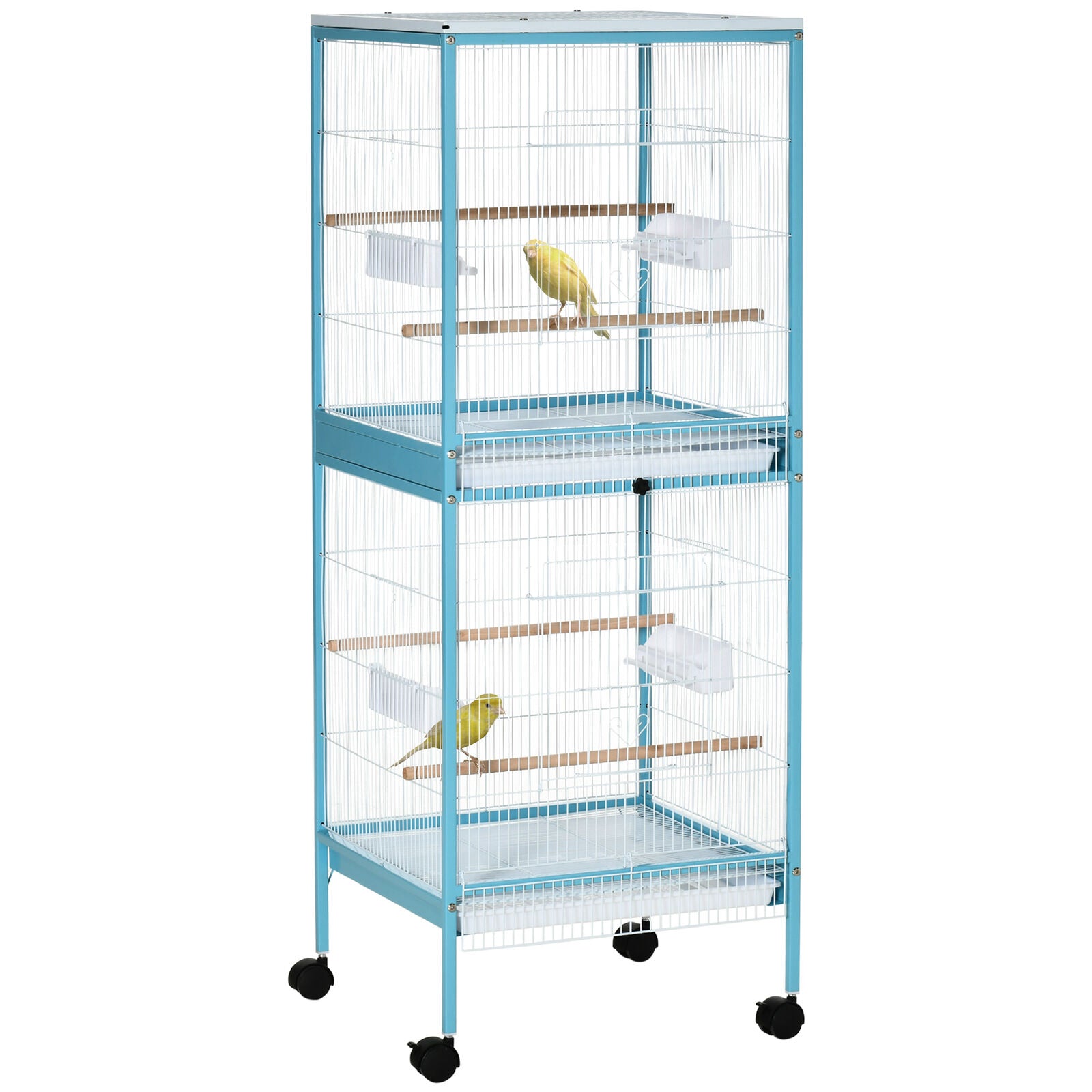 2 In 1 Large Bird Cage Aviary with Wheels, Slide-out Trays Wood Perches