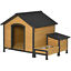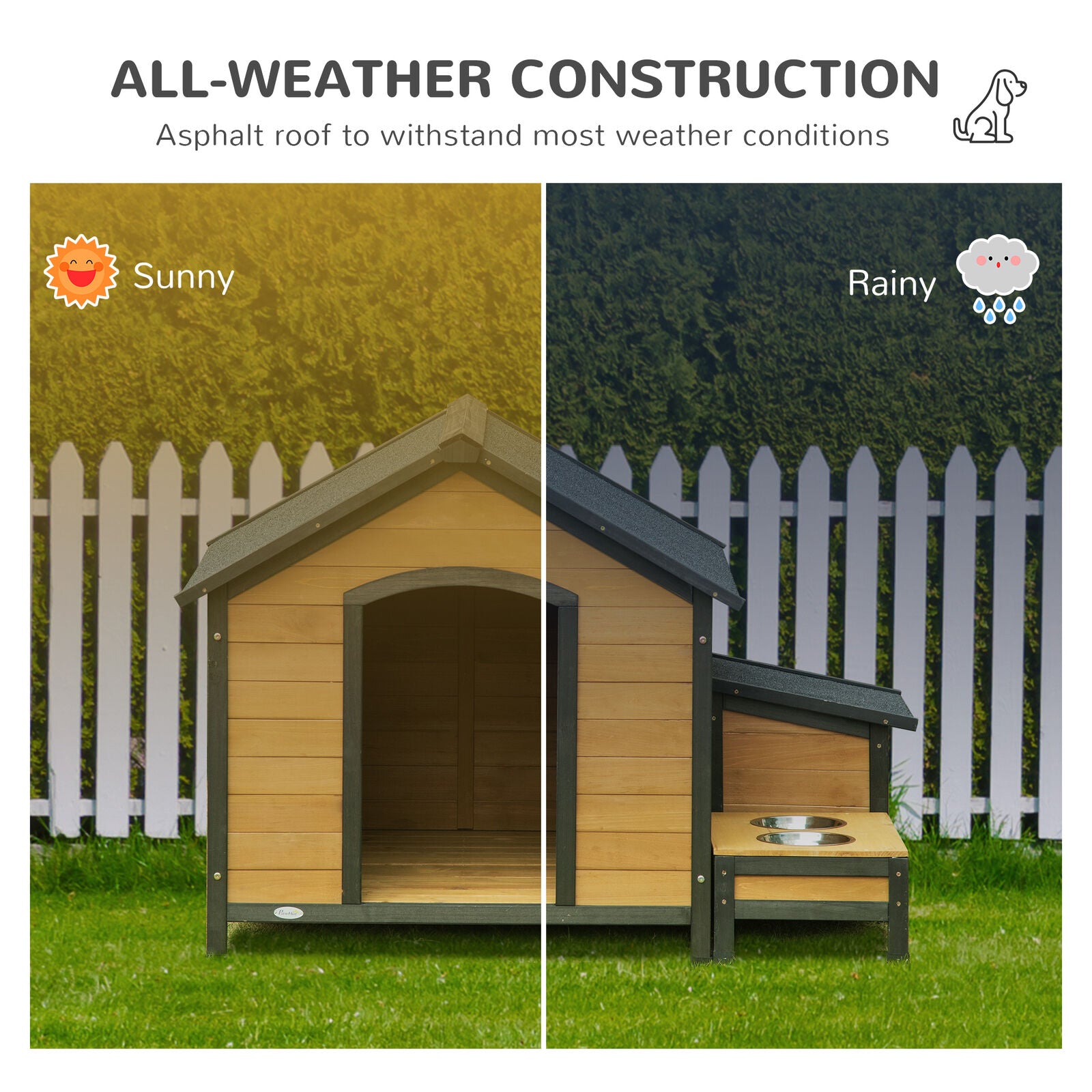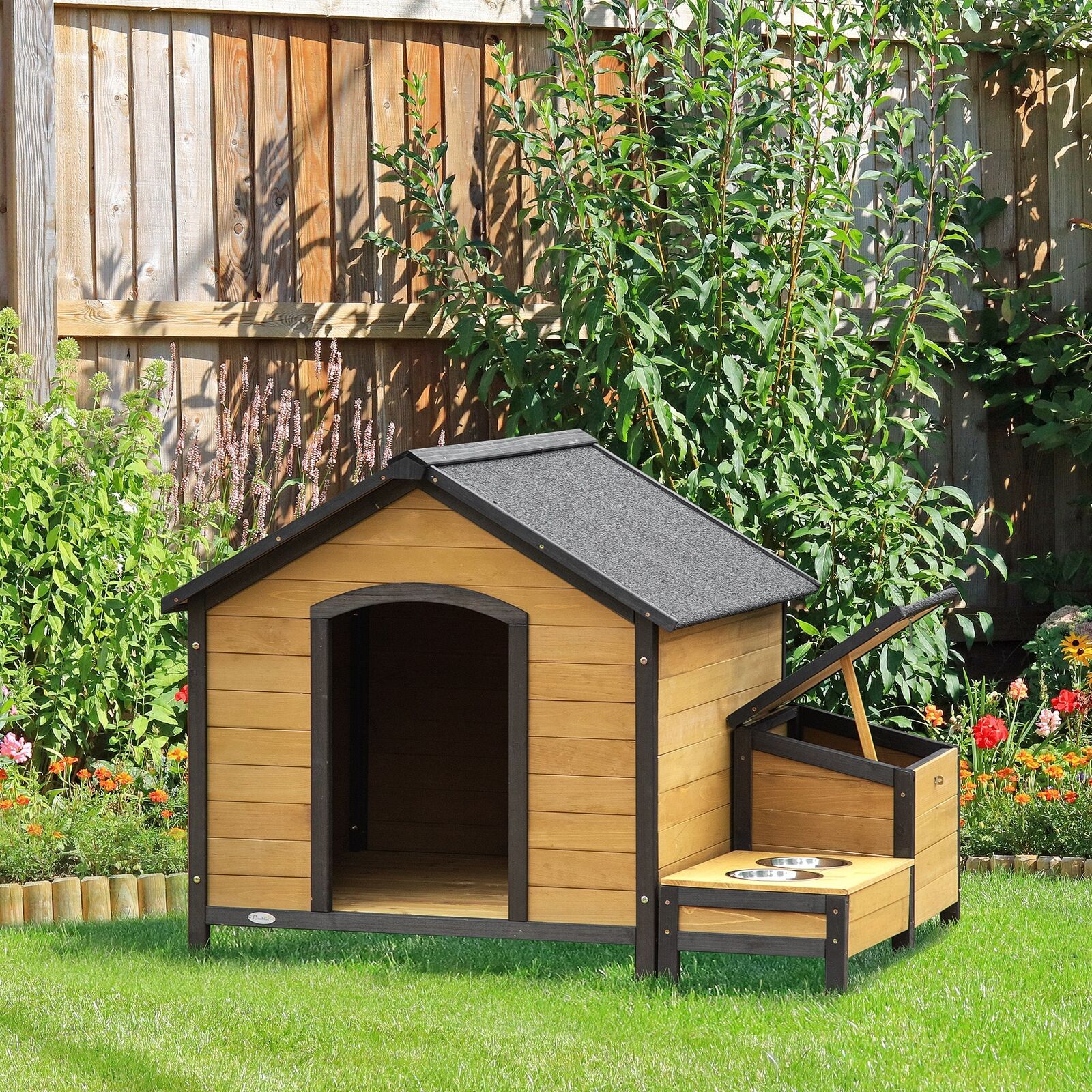 Wooden Outdoor Cabin-Style Dog House Kennel w/ Feeder Bowls, Medium Dogs 66 Lbs. 196393165720