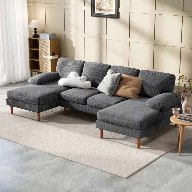 The U-shaped sofa with double chaises from HOMCOM offers versatility and spacious seating, providing ample space for relaxation and entertainment. Upholstered in soft corduroy fabric, our fabric sofa combines comfort with style, making it an excellent choice for modern or traditional living room settings.