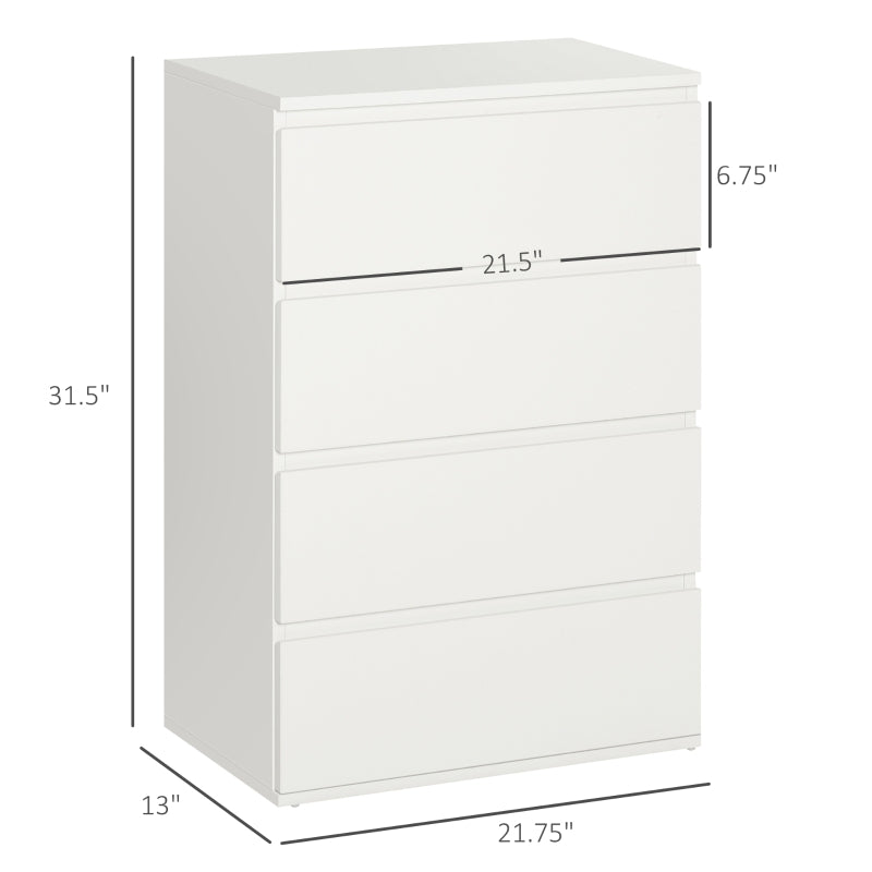 Fresh and simple, this drawer cabinet is the perfect addition to any bedroom or living space out there. Featuring four drawers and spacious tabletop, it offers plenty of space for storage to keep your home easily clean and organized. Drawer with push open latch can be opened and closed more easily. A great storage solution for your home.