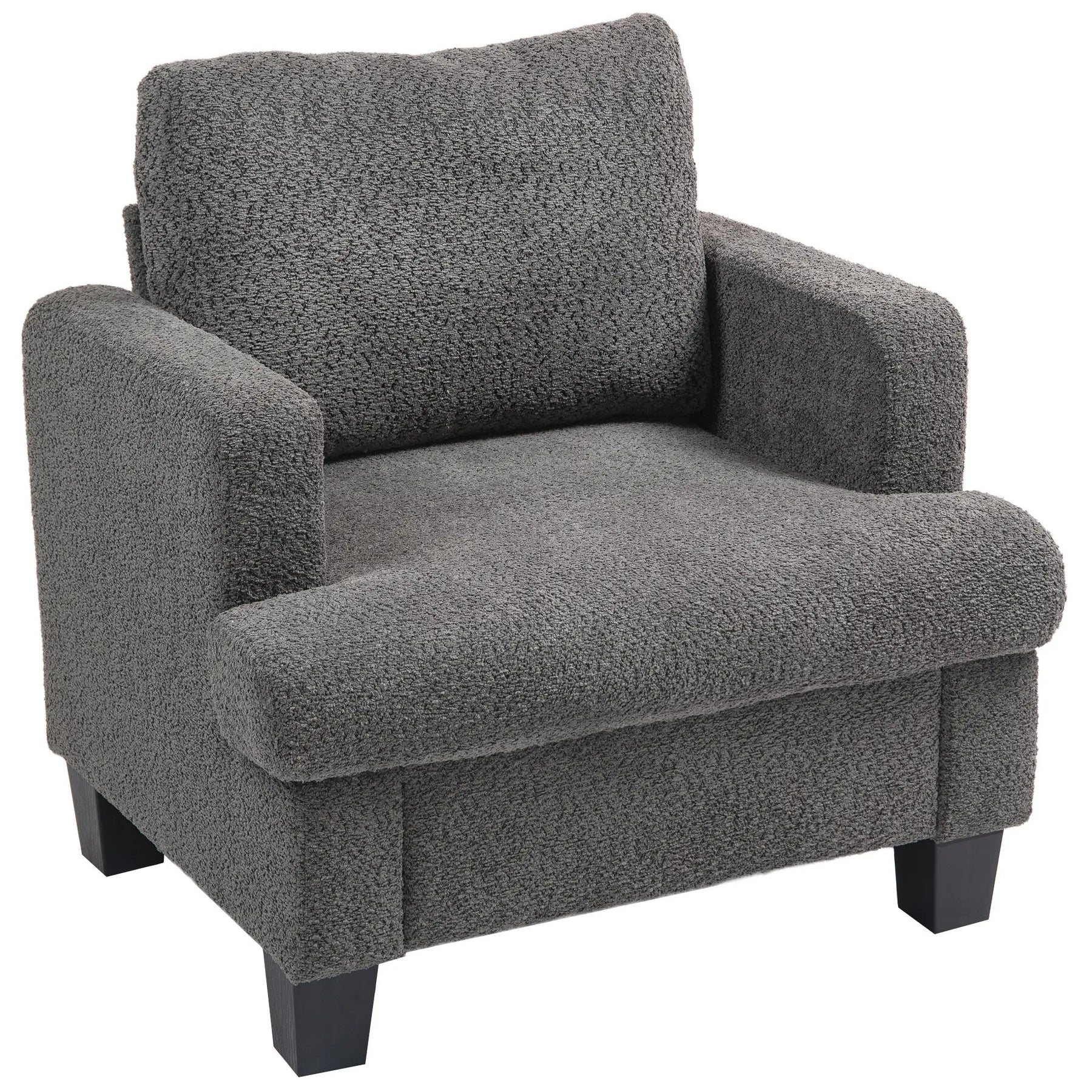 Sink into the plush comfort of the HOMCOM sofa chair for living room, wrapped in soft chenille fabric and stuffed with high-density foam. Enjoy the modern style with long padded armrests for extra relaxation and a removable, washable back pillow for easy care. Optimal as a reading chair in your living room or a comfy chair in your study.
