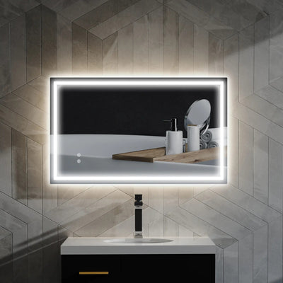 HOMCOM 39" x 24" Bathroom Mirror with LED Lights, Wall Mounted Vanity Mirror with Anti-Fog Pad and Touch Button, Clear