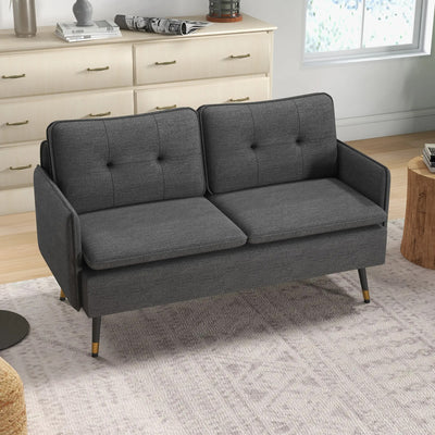 HOMCOM Modern 55" Loveseat, Fabric Love Seat Sofa with Button Tufted Back, Steel Legs for Bedroom, Living Room, Dark Grey