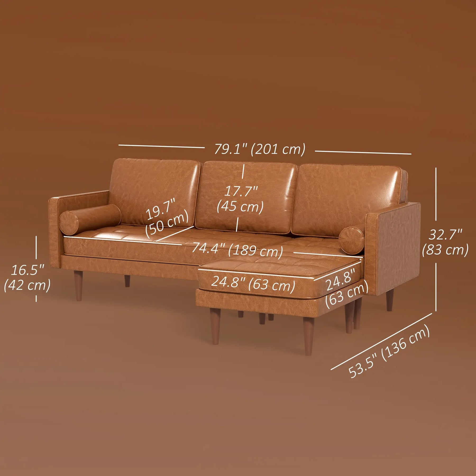 - Couch Seat Size: 74.4" W x 19.7" D x 16.5" H (189 x 50 x 42 cm)