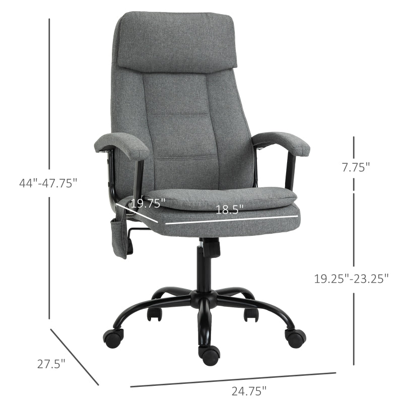 Vinsetto Office Chair 2-Point Massage Executive Ergonomic USB Power Adjustable Height 360° Swivel Grey