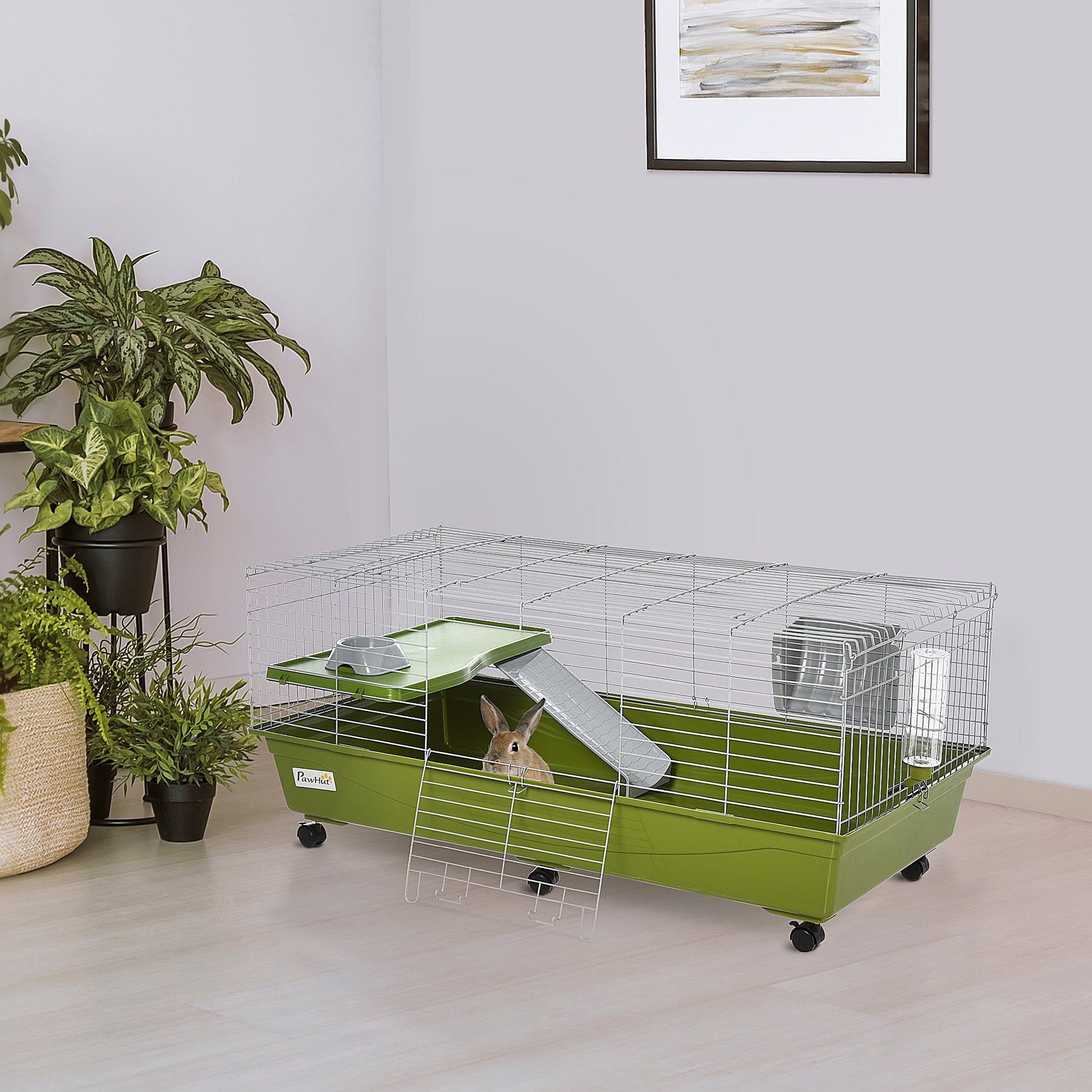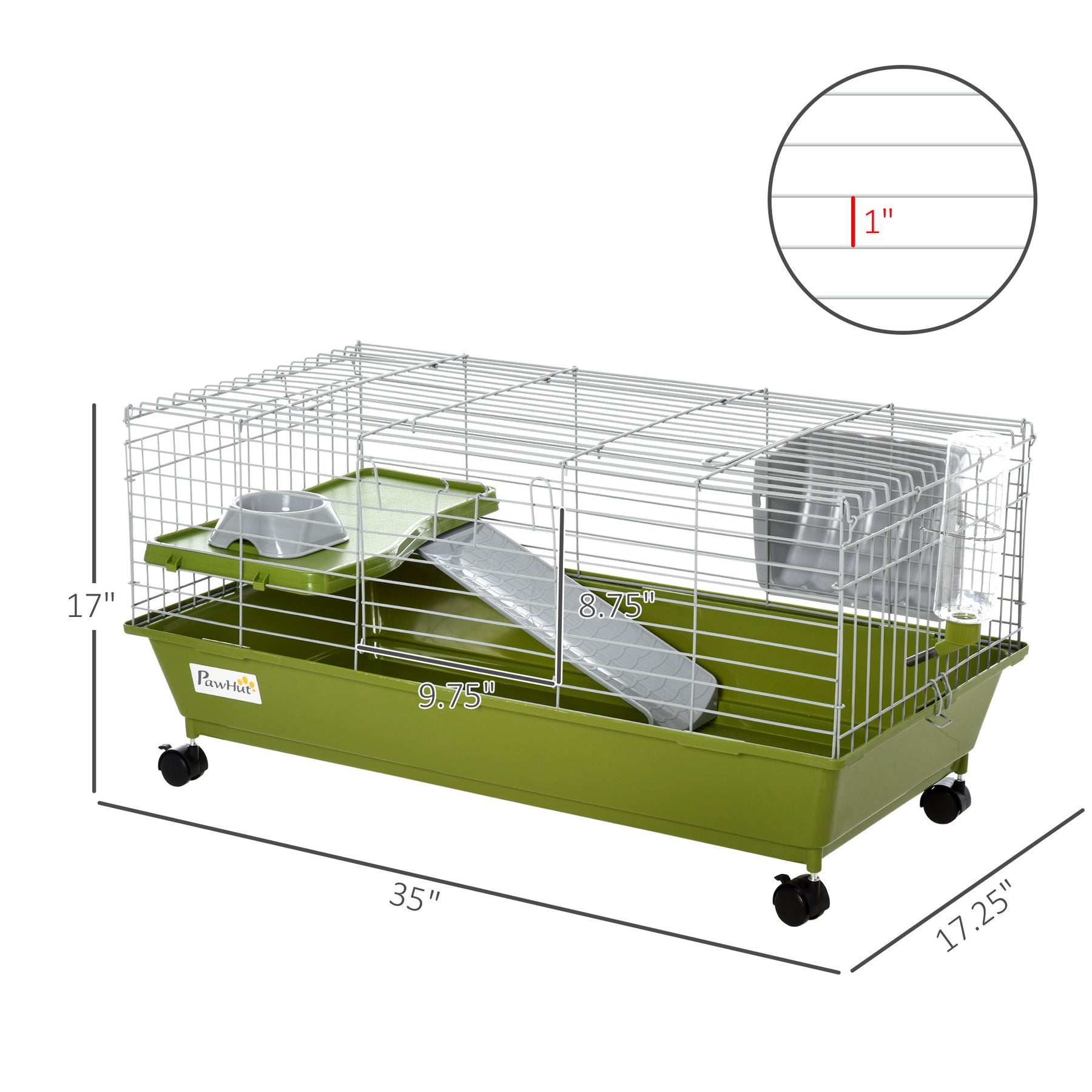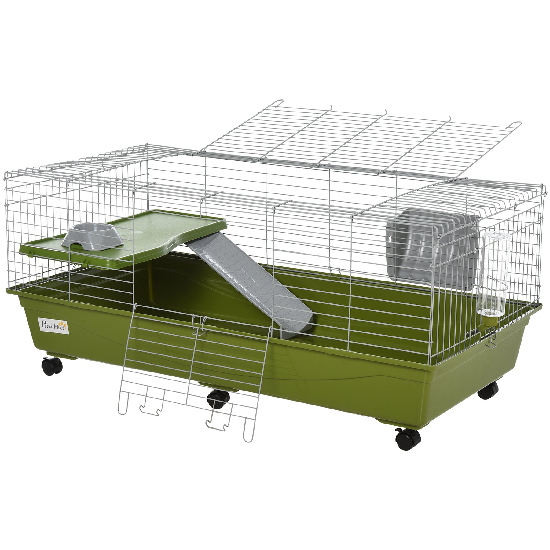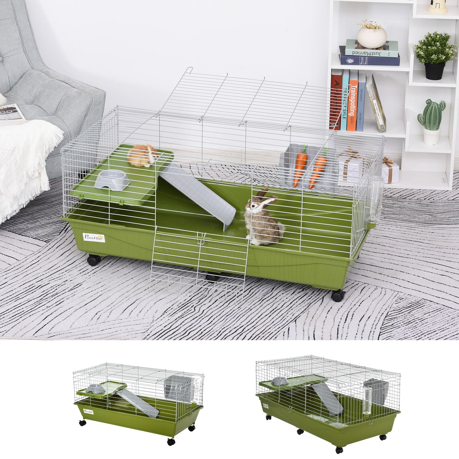 - This PawHut small animal cage is the perfect home for small animals like rabbits and guinea pigs! The durable design of this guinea pig cage features a large door for easy access to your pet at a moment's notices. Plus, this hamster cage has a deep base for your pet to live and play, giving plenty of living space for them. Also, the chinchilla cage features a ramp and platform to complete this cage. Keep them secure, but also keep them active and occupied for a long life worth living.