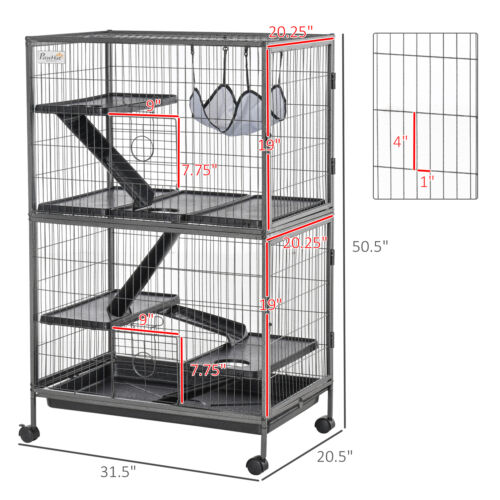 - This 5-tier animal habitat from PawHut provides tons of free space for climbing, playing, and exercise. With wheels, you can move the cage effortlessly, making it quick and easy to shift things around. Bring your pet with you to the next room, and keep your animal buddy by your side in a portable design that's big and spacious. From ferrets to sugar gliders to chinchillas, this cage will please many a pet, offering the fun heights they deserve in multi-platform heaven.