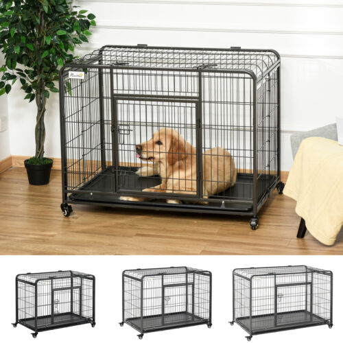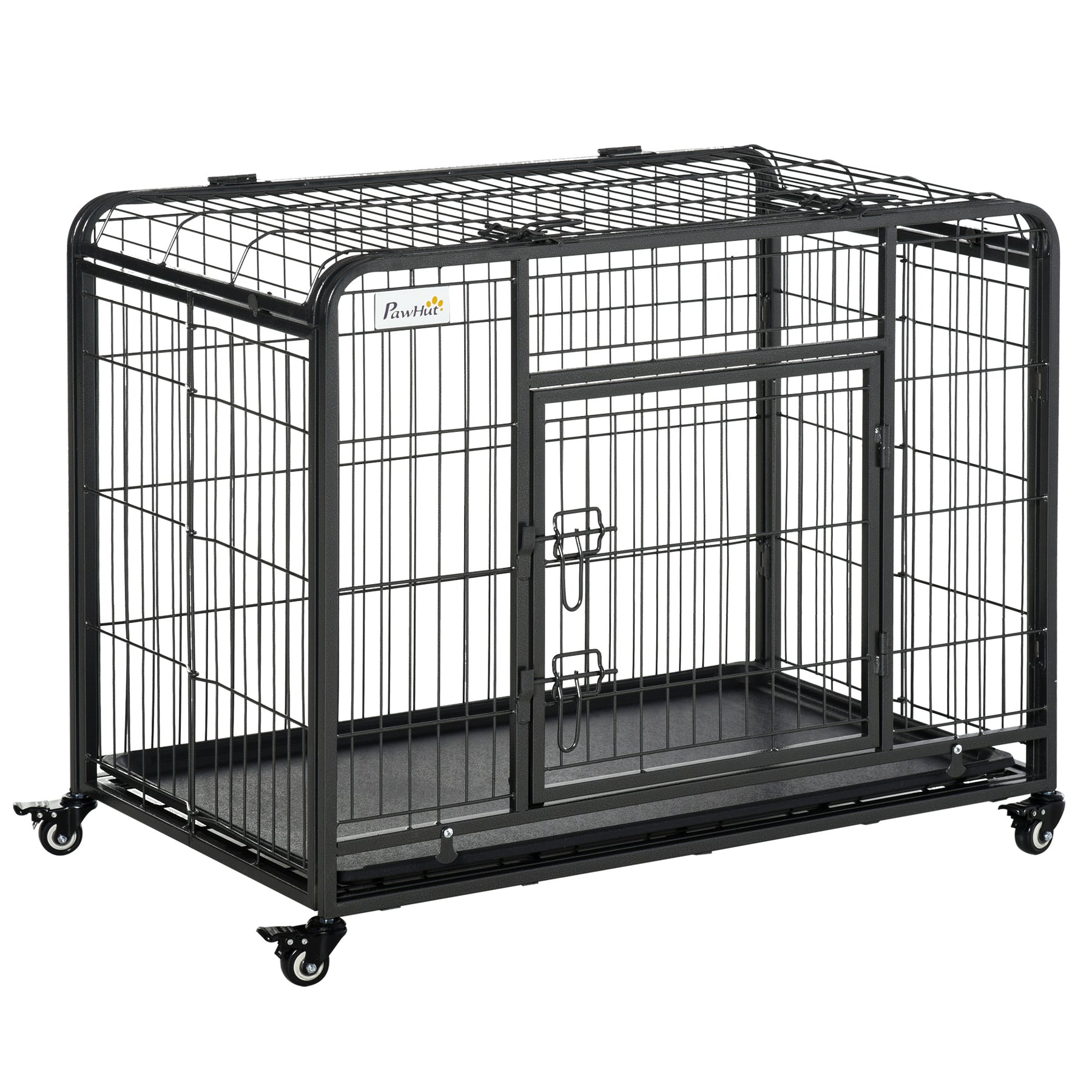 Indoor Grey Puppy Kennel w/ 4 Wheels & Easy Folding Design