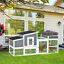 59" Wooden Rabbit Hutch Playpen Bunny House with Sunlight Roof Ramp Tray Grey