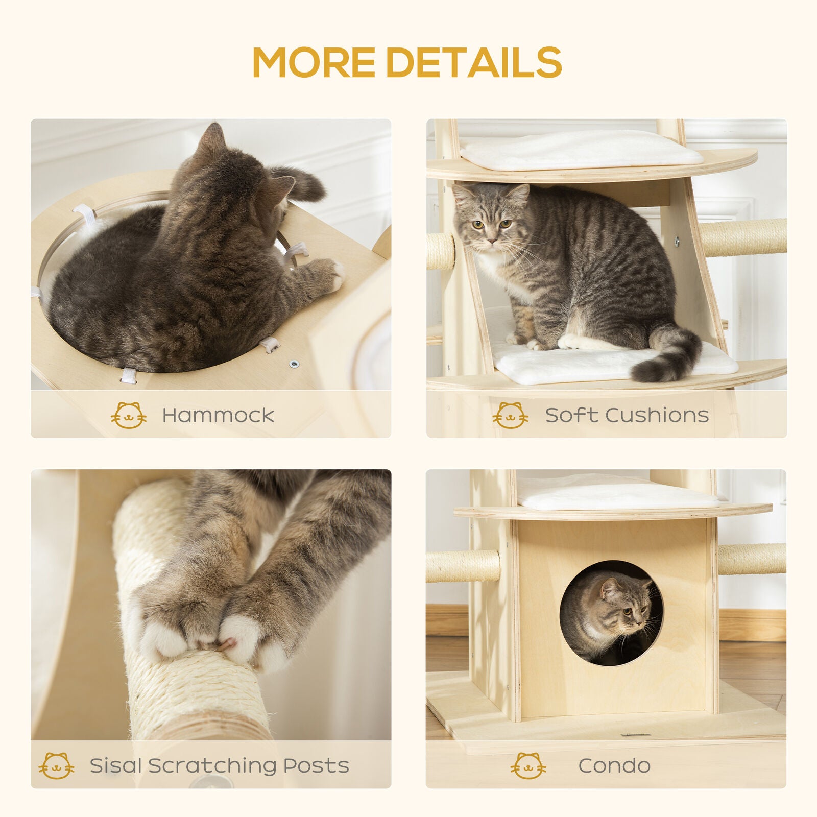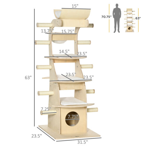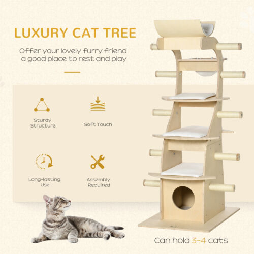 Wood Cat Tree for Climber Kitties, Modern Cat Tree for Indoor Cats, Cat Tower 196393255049