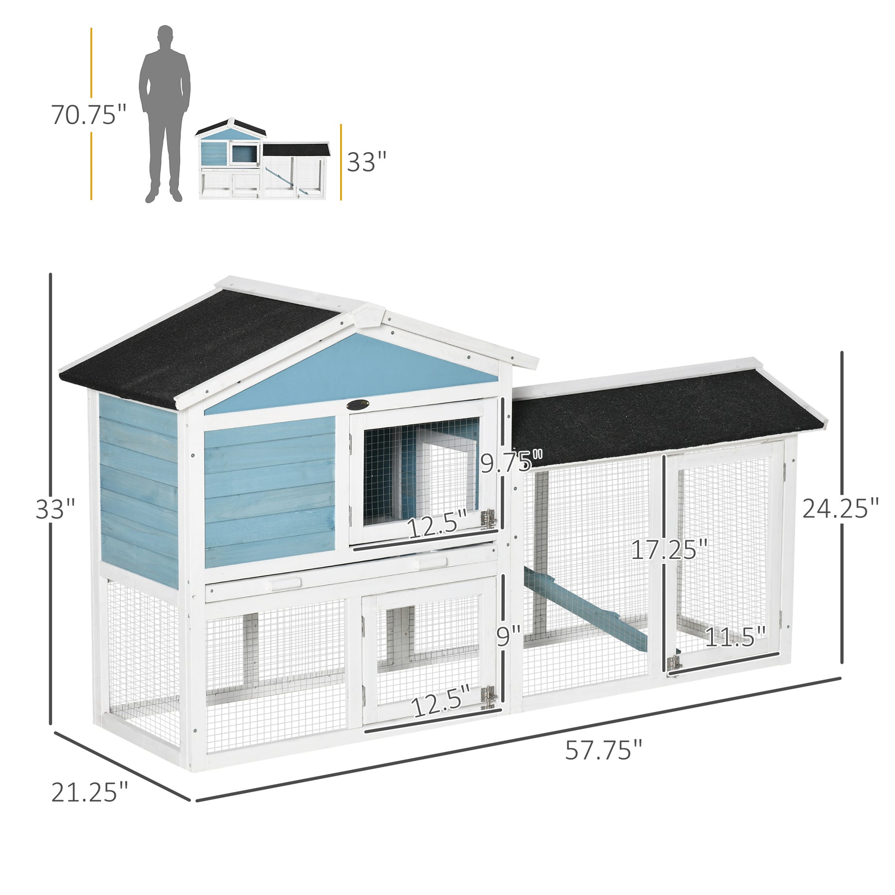 Bunny Cage w/ Slide-Out Tray Run Area Lockable Doors for Small Animals, Fir Wood
