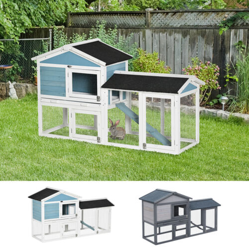 Two Story Small Animal House w/ Slide Out Tray, Ramp, Outdoor Run