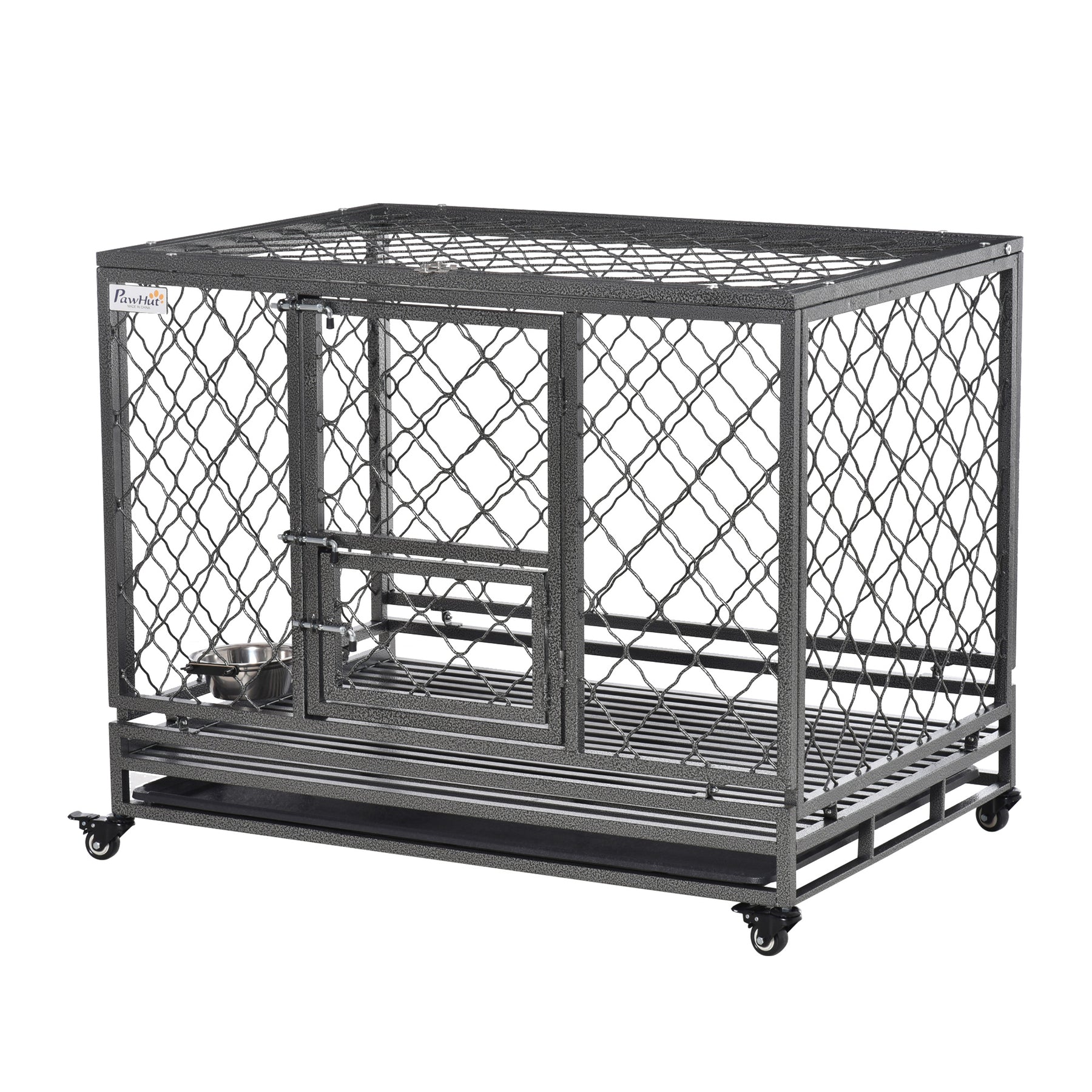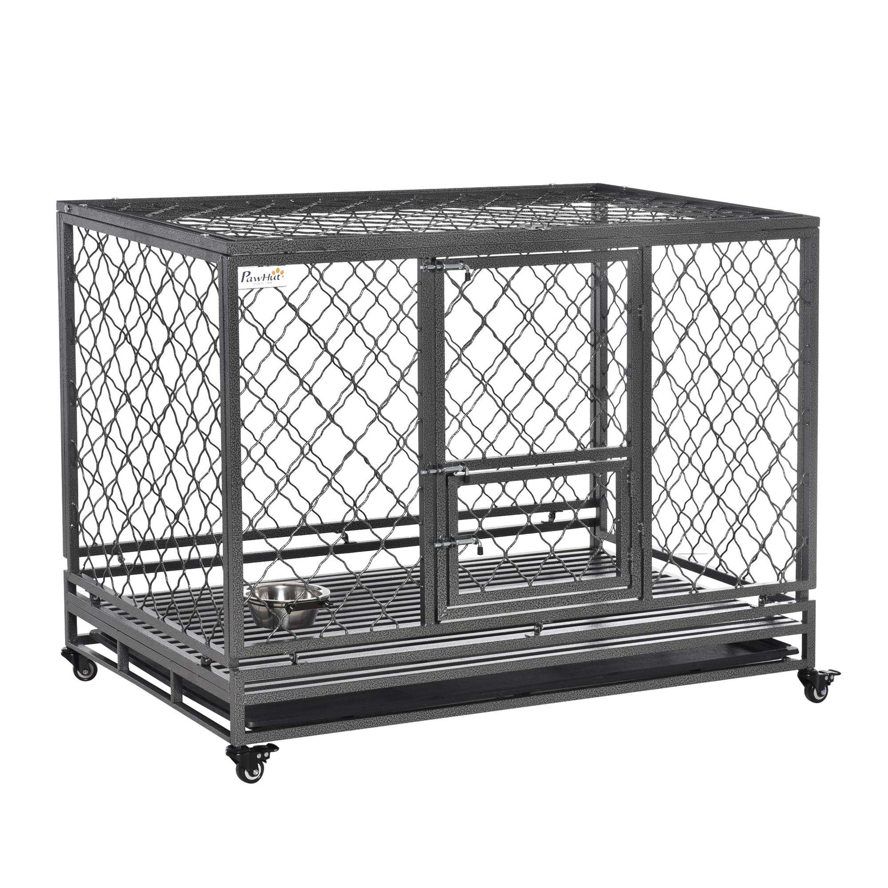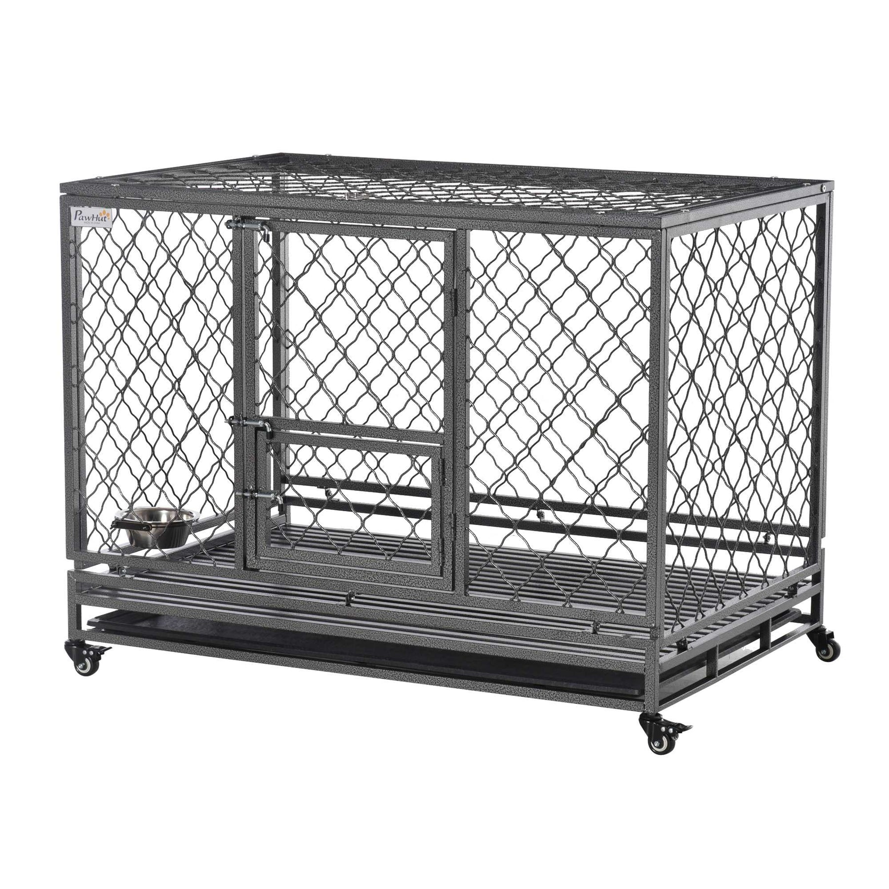 Steel Dog Kennel Collapsible with Easy-Open Top Hatch and Slide Out Tray, Black