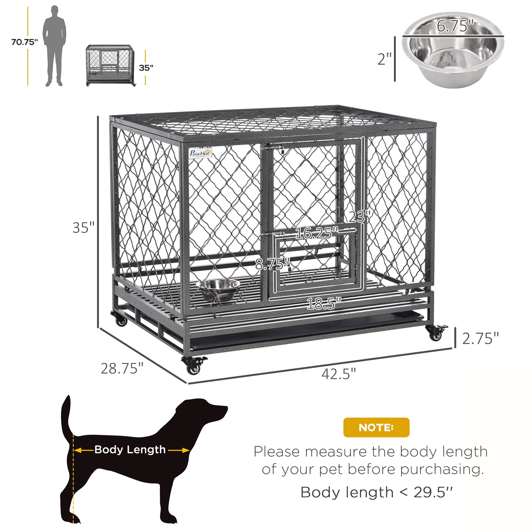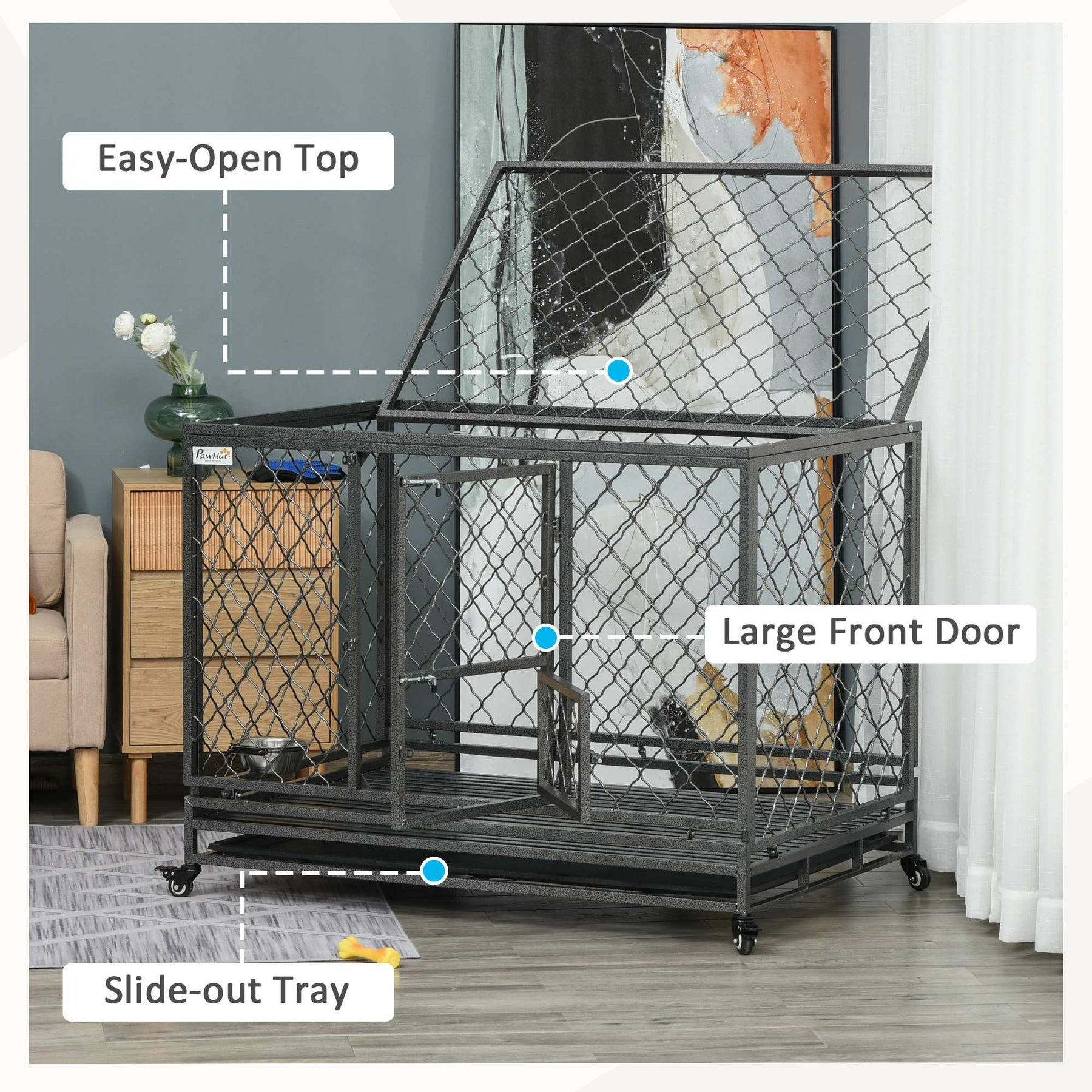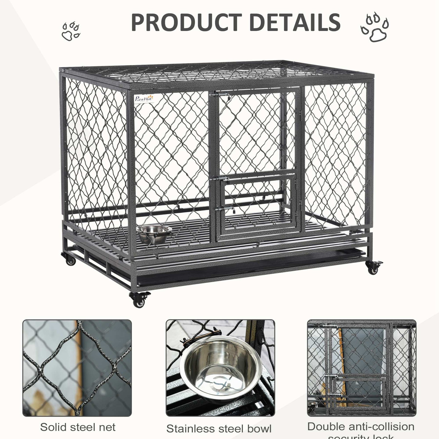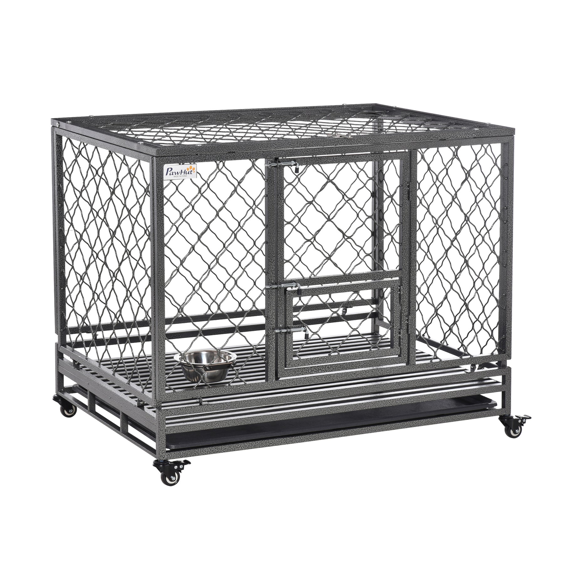 Steel Dog Kennel Collapsible with Easy-Open Top Hatch and Slide Out Tray, Black