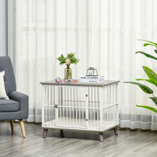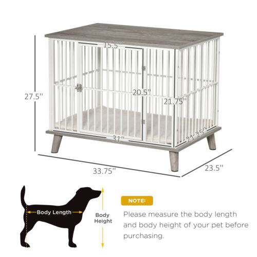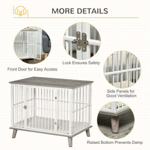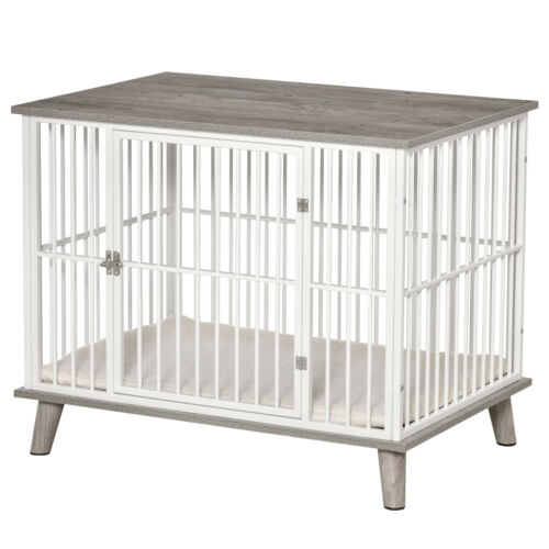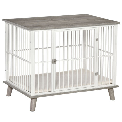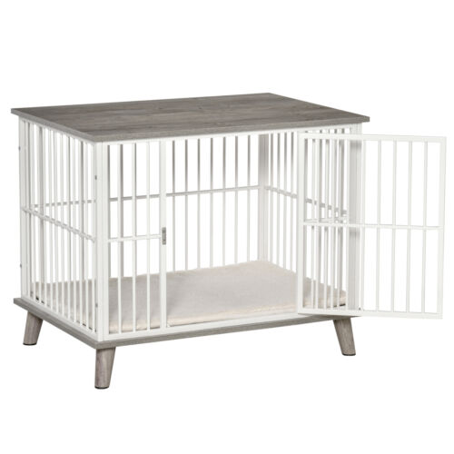 Wooden Dog Crate with Surface, Stylish Pet Kennel, Magnetic Doors, Grey 196393066478