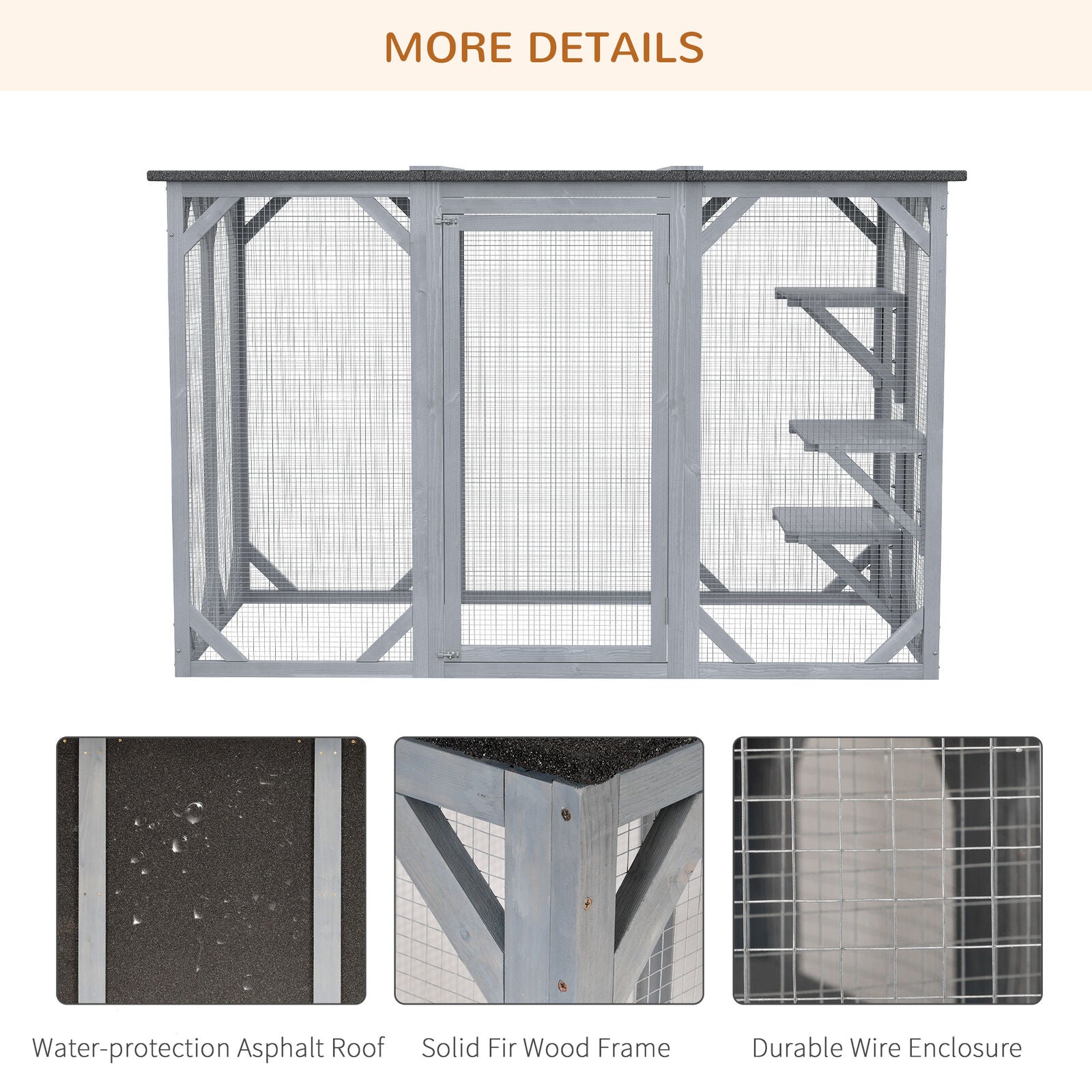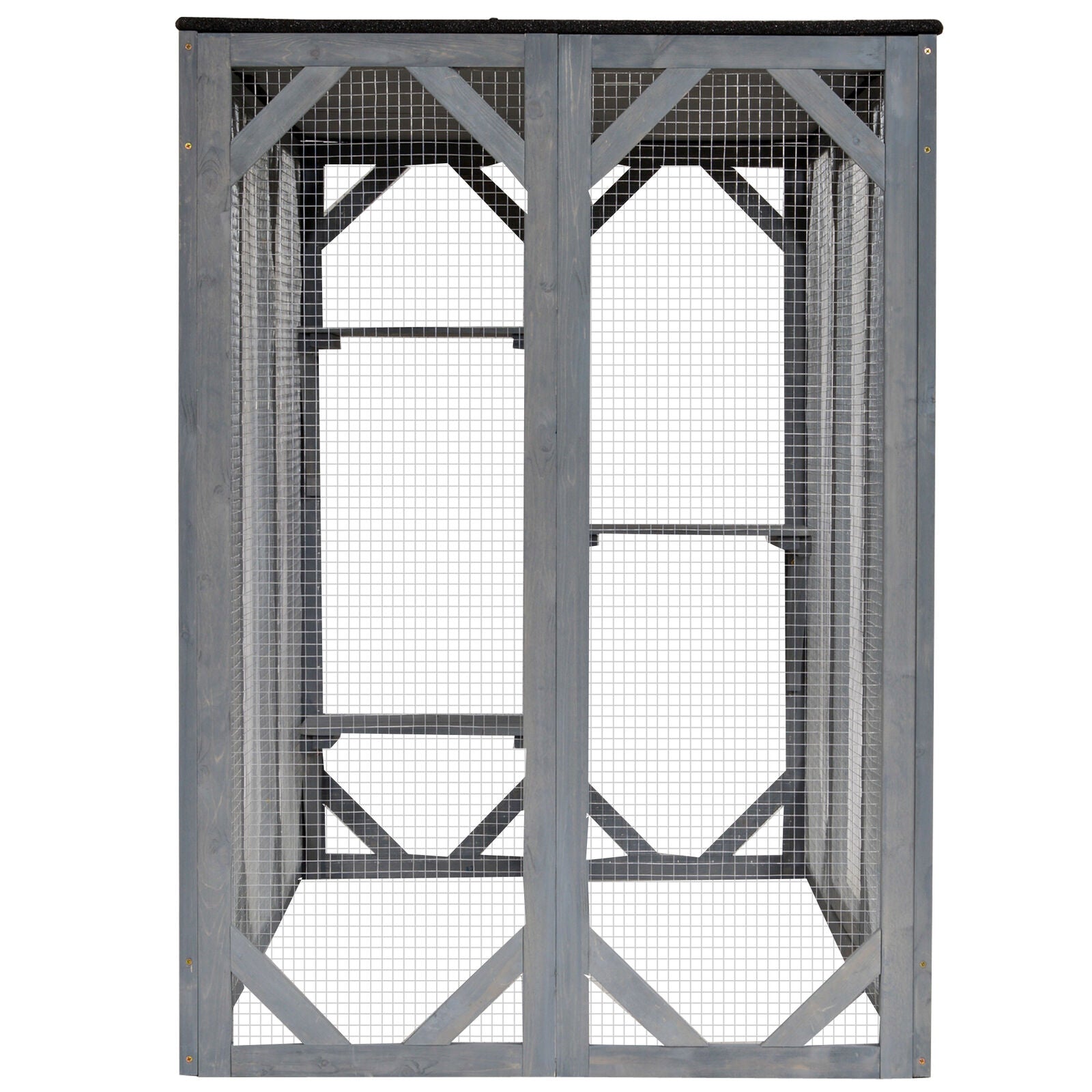 Cat Cage Wooden Pet Enclosure with Waterproof Roof, Platforms, Lock, Grey 842525170734