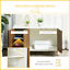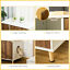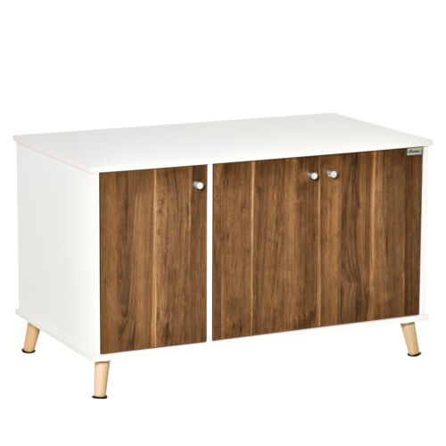 - You'll find this litter box furniture from PawHut to be a great private, comfortable, and safe addition to your pet's lifestyle. Designed to fit most sizes and style litter pans, this cat litter box cabinet with a side entrance will make life easier for you and your feline. This cat litter house also has shelves that you can use to store pet supplies, magazines, and more. Provide your cats with the privacy they deserve while they take care of their business.