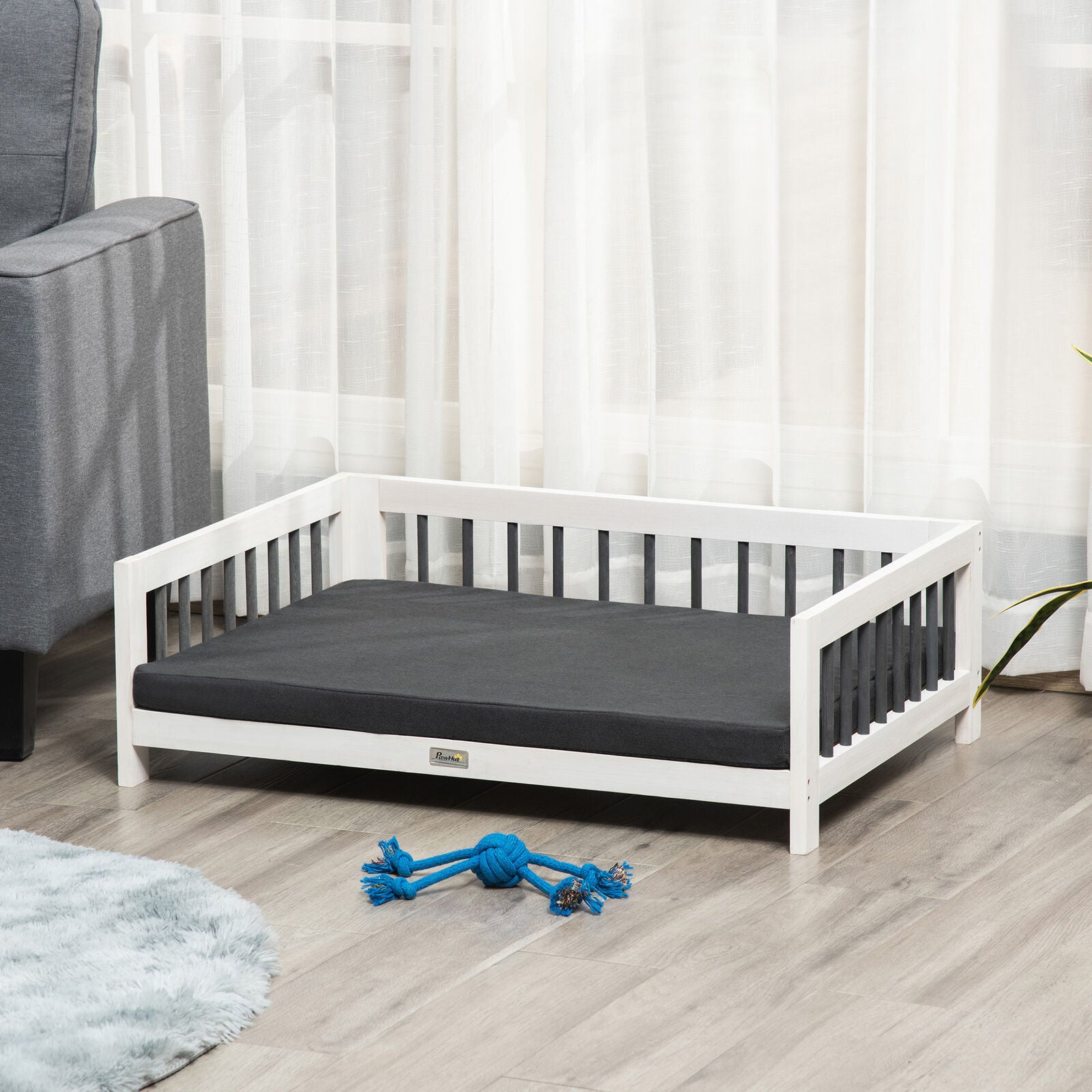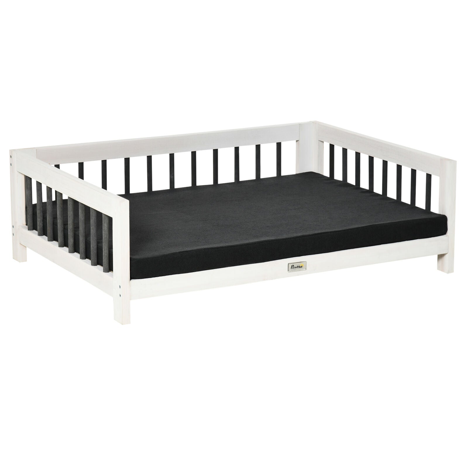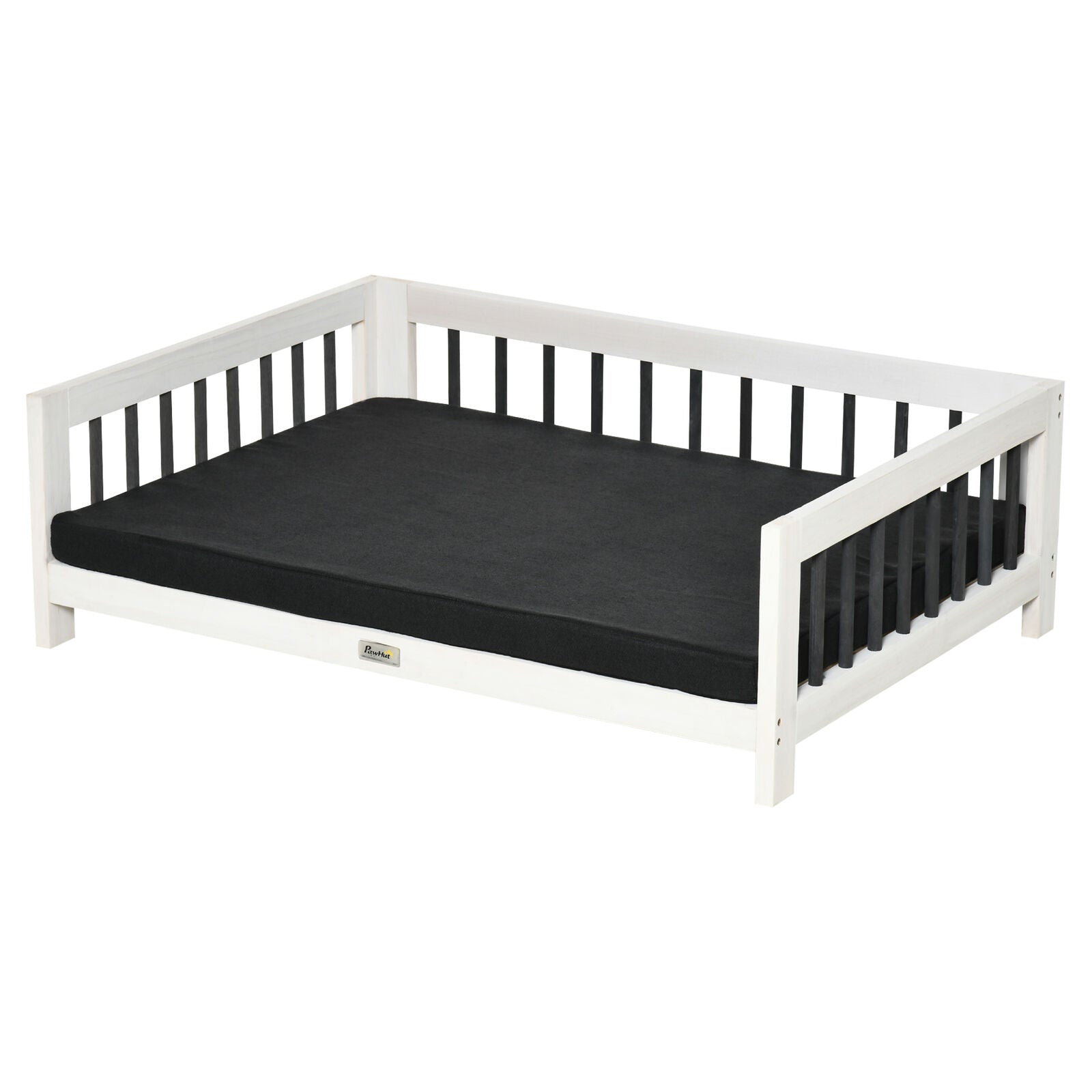 - This decorative black and white medium dog bed features a soft cushion to provide sponge support with comfortable foam, enhancing sleep. The pine wood is durable for high-quality materials, offering a reliable frame. Unlike thick cushions, the raised surface is cooler in the summer and the heat, keeping your pup feeling good throughout rest. On hot days, you can take the cushion off to make your pet feel even cooler. Let your dog sleep higher and elevated, using this indoor dog bed.