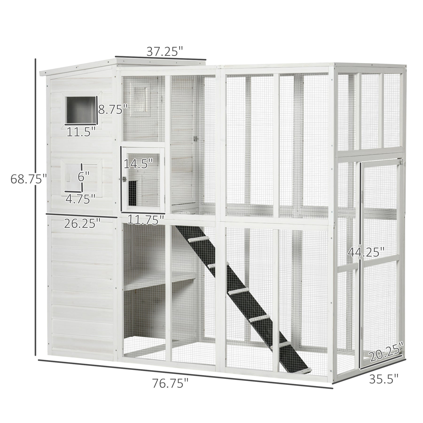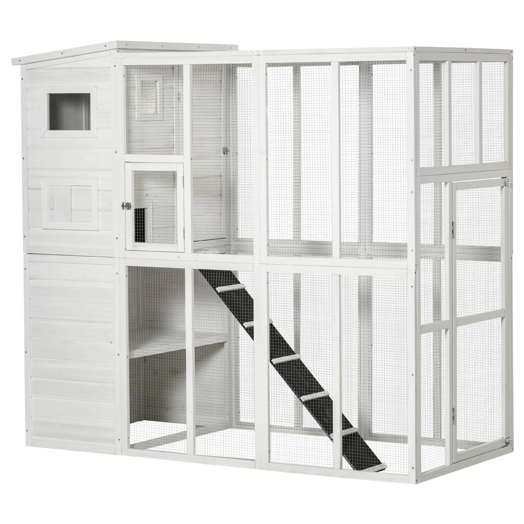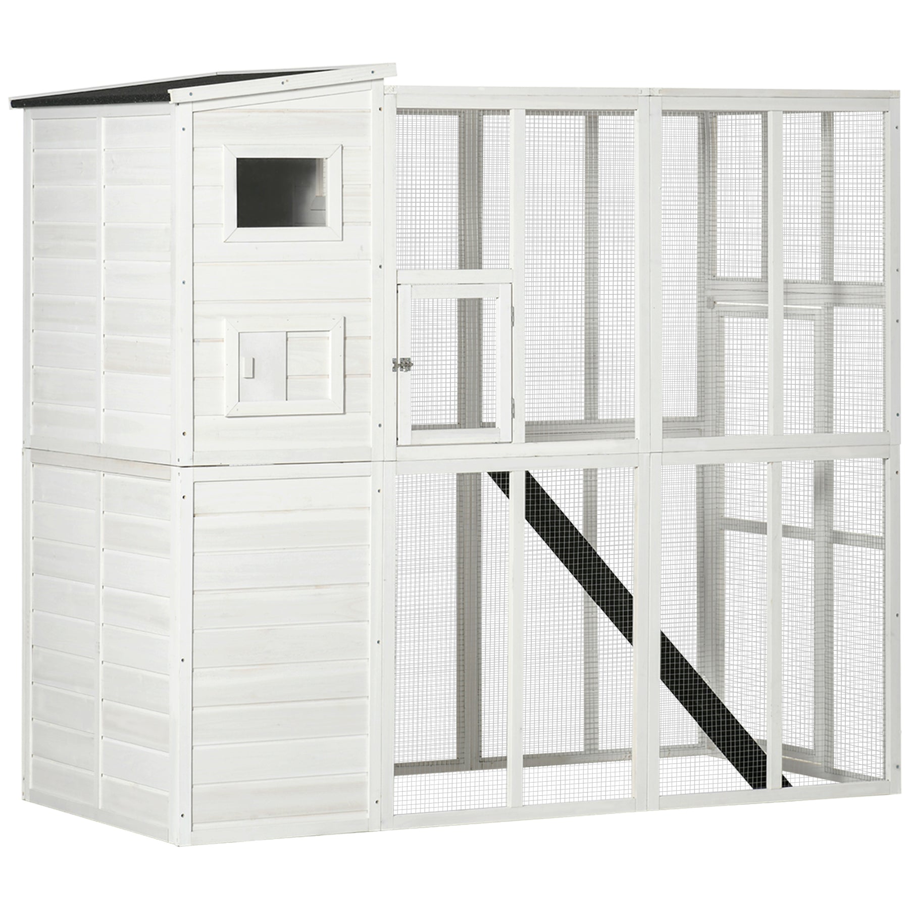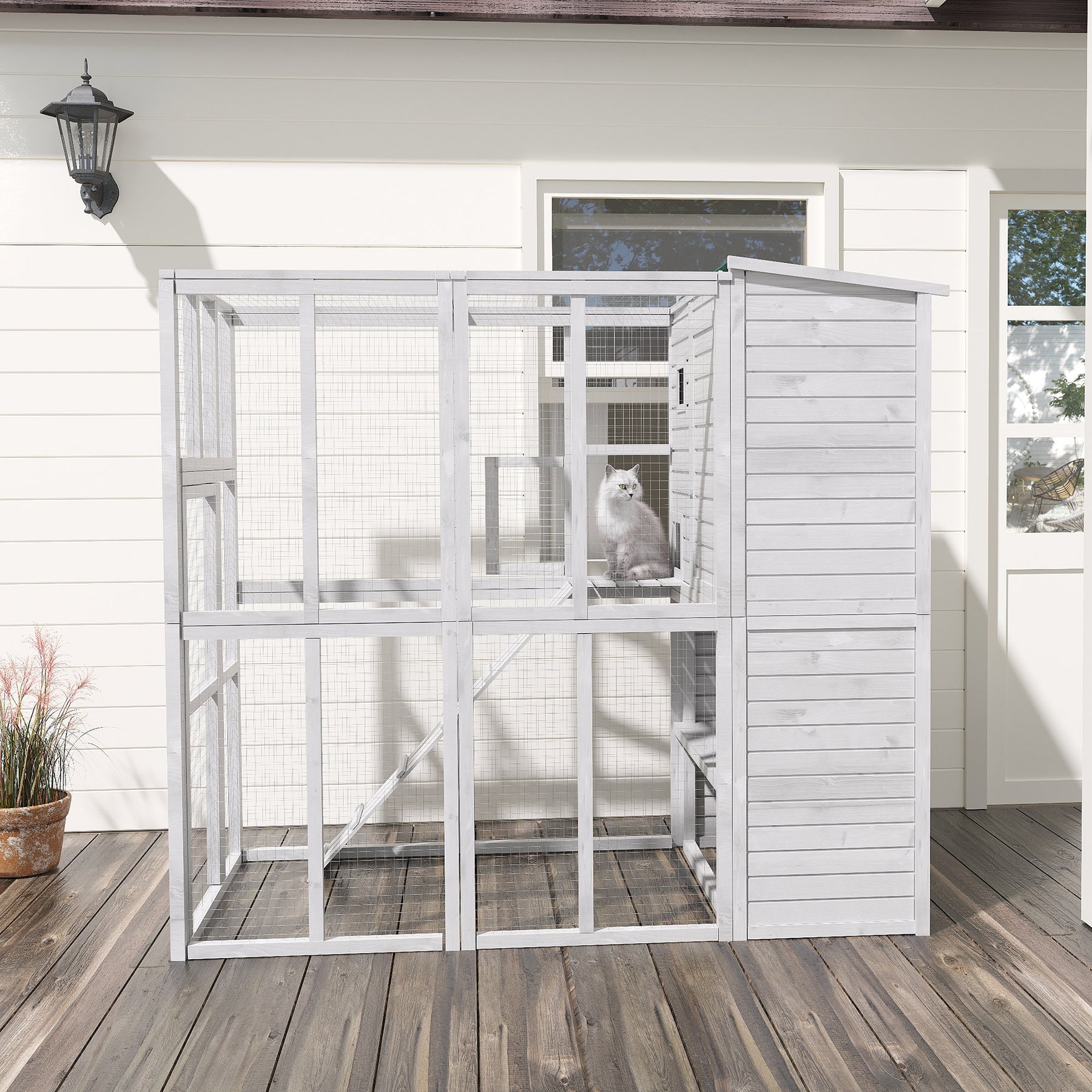 - Let this fantastic Pawhut large catio allow your cat to enjoy the great outdoors without the danger of roaming free. It is built on a sturdy wood frame that allows your pet to be outside without wandering freely. The flat roof has been covered with asphalt to help weather protection and keep your pet shaded from the sun and protected from the rain. This cat kennel is perfect for single or multiple pets and can house cats, dogs, squirrels, or small to medium pets.