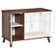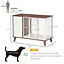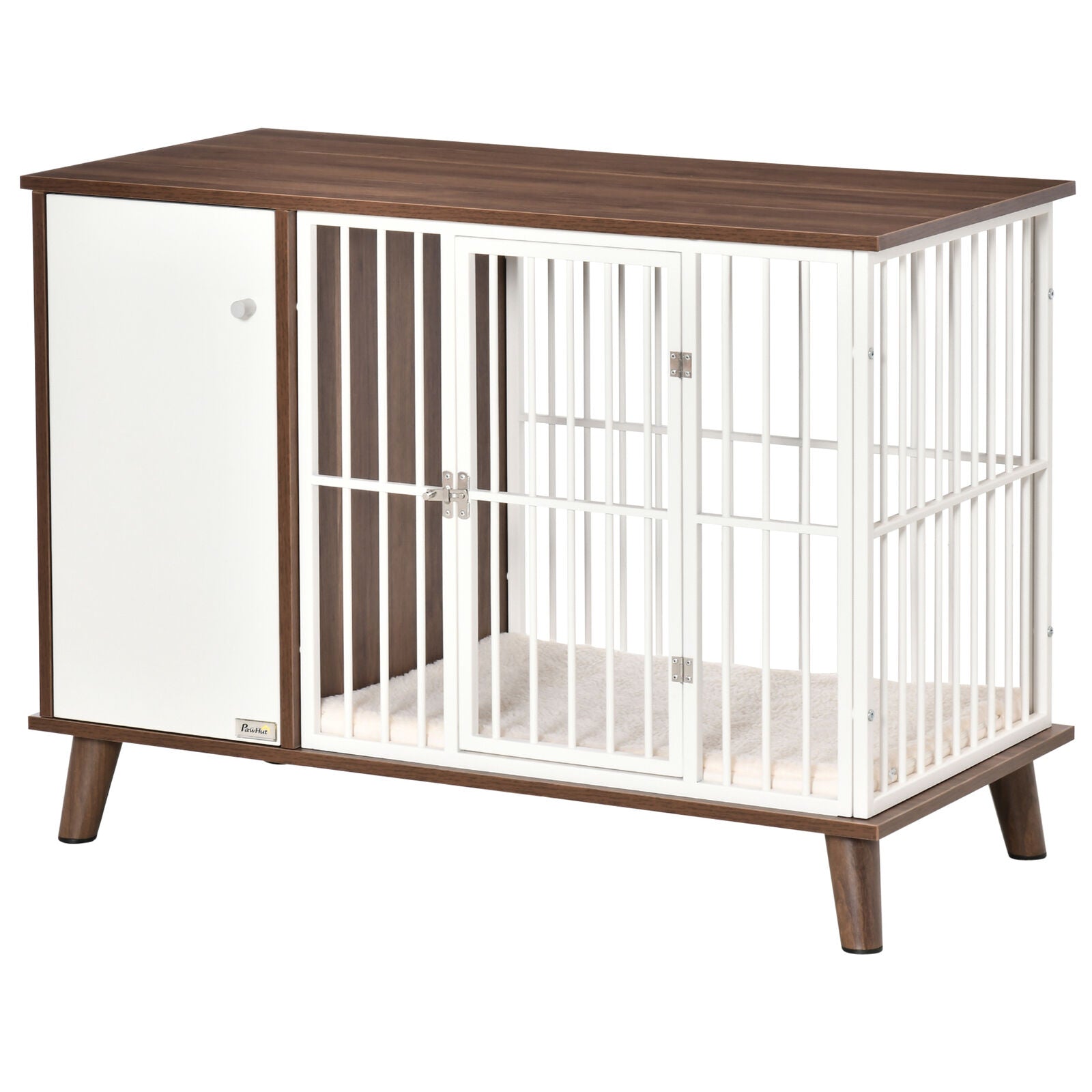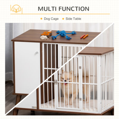 - Looking for a comfy home for your pet? This PawHut modern dog crate provides a comfortable and secure home for your furry friend. It's two-in-one, with an end-table style serving as somewhere to keep dogs safe, and also as a stylish coffee table or side table that you can place in any living space. This decorative dog crate is constructed with a sturdy steel frame, suited for small dogs. Altogether with the soft cushion, you'll provide an excellent place for your furry friends to rest.