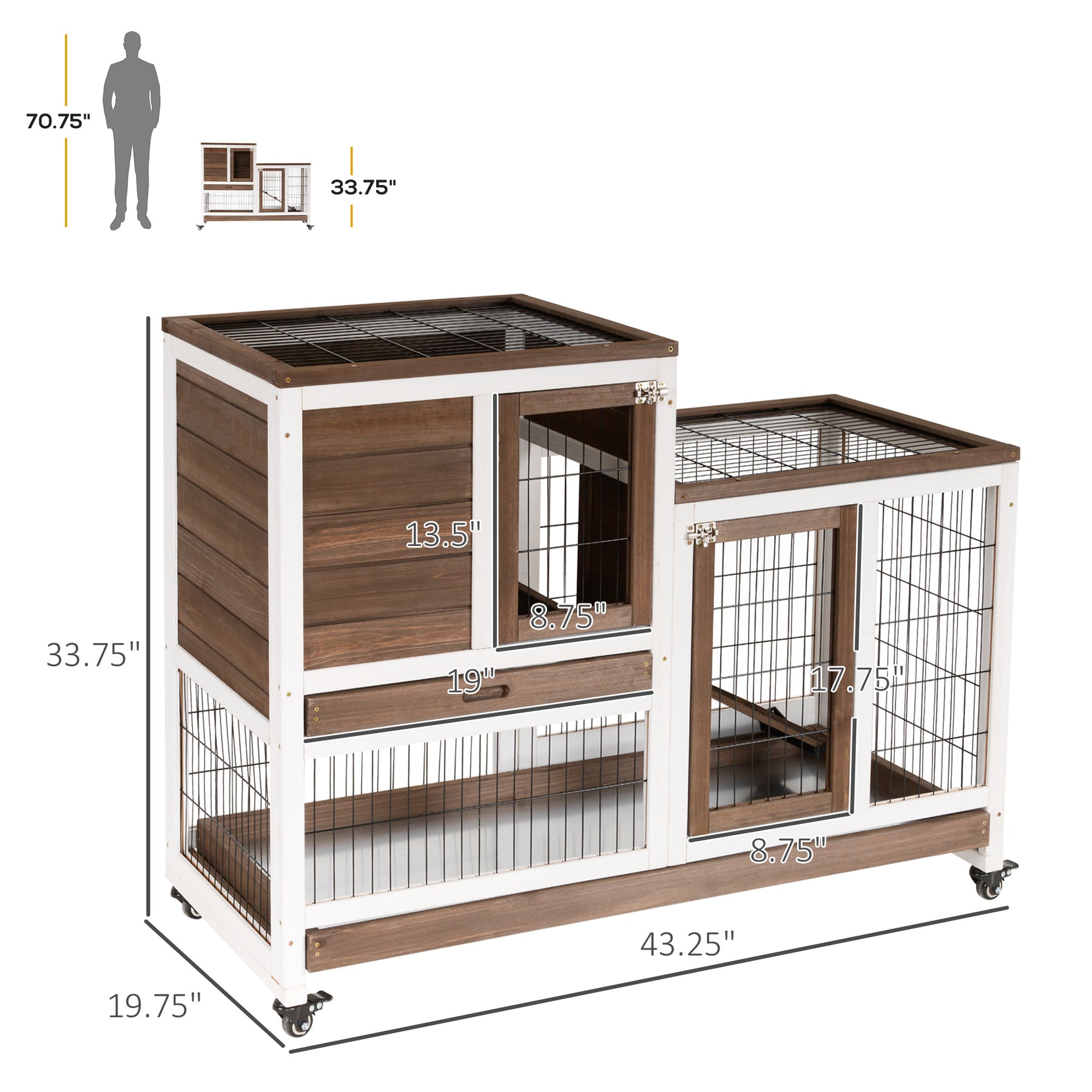 - This quail hutch from PawHut is perfect for use with rabbits, guinea pigs, and other small animals. A great rabbit playpen features sturdy construction for daily use. With 4 wheels to move easily or keep it in place. This rabbit hutch has a sturdy steel wire run space for pets to run around and an enclosed room for them to sleep indoors with a ramp for easy access. 2 lockable doors to gain quick access to your pets and 2 removable pull-out trays to make cleaning simple and quick.